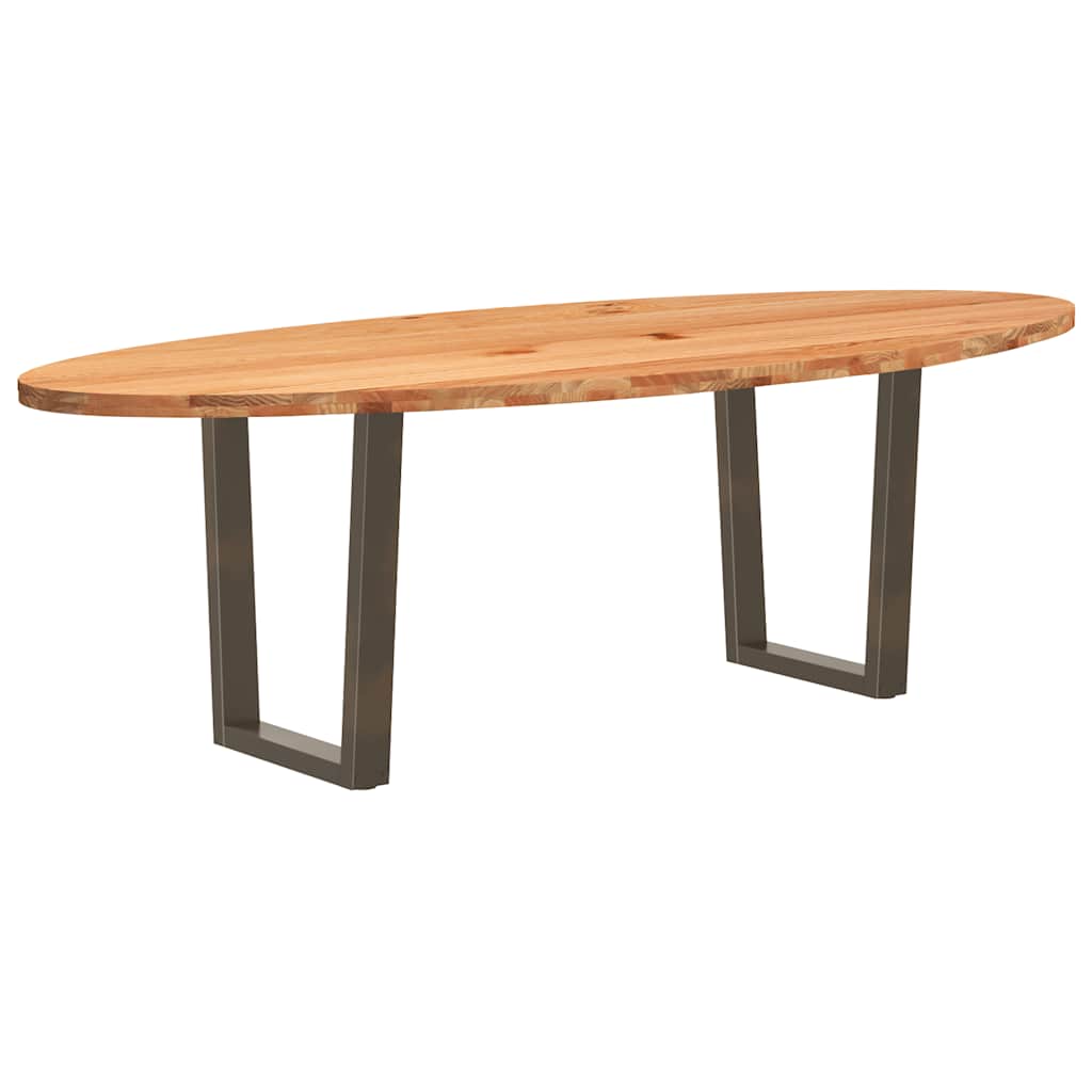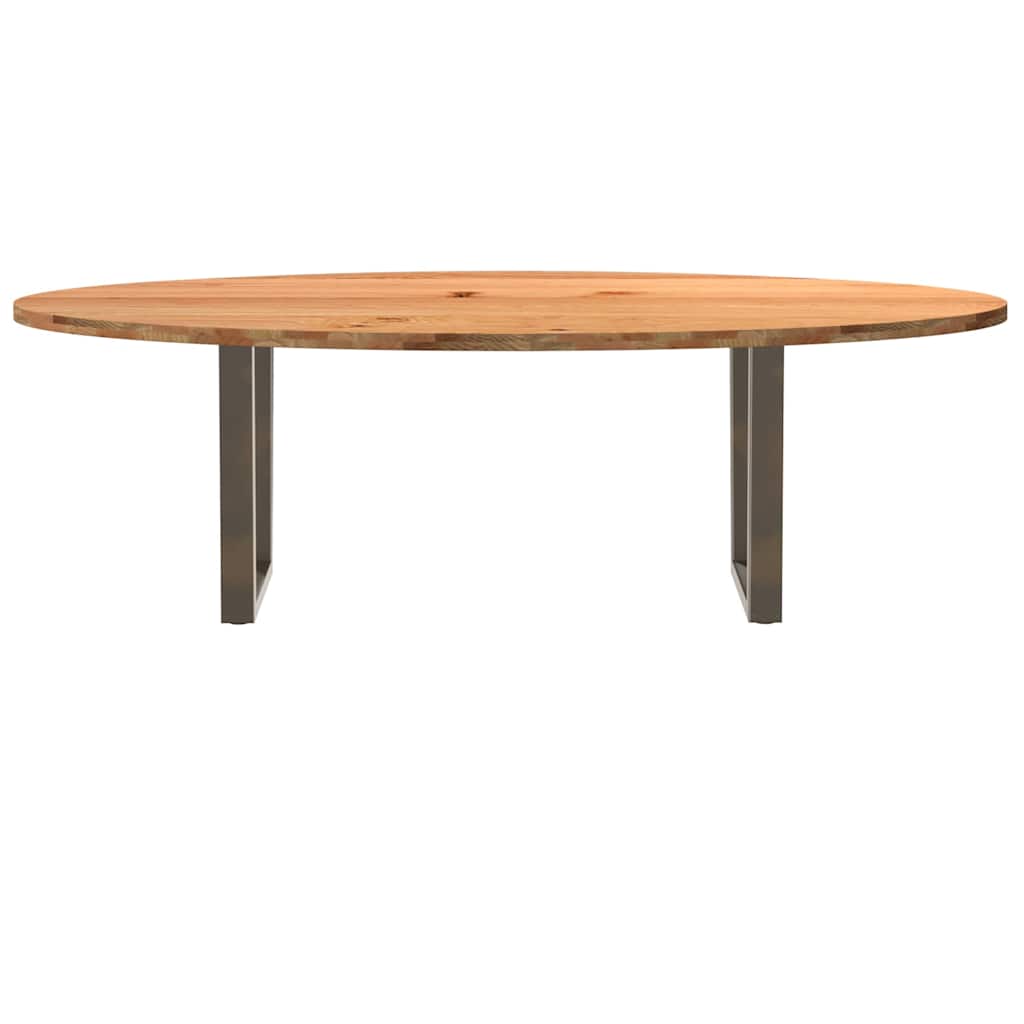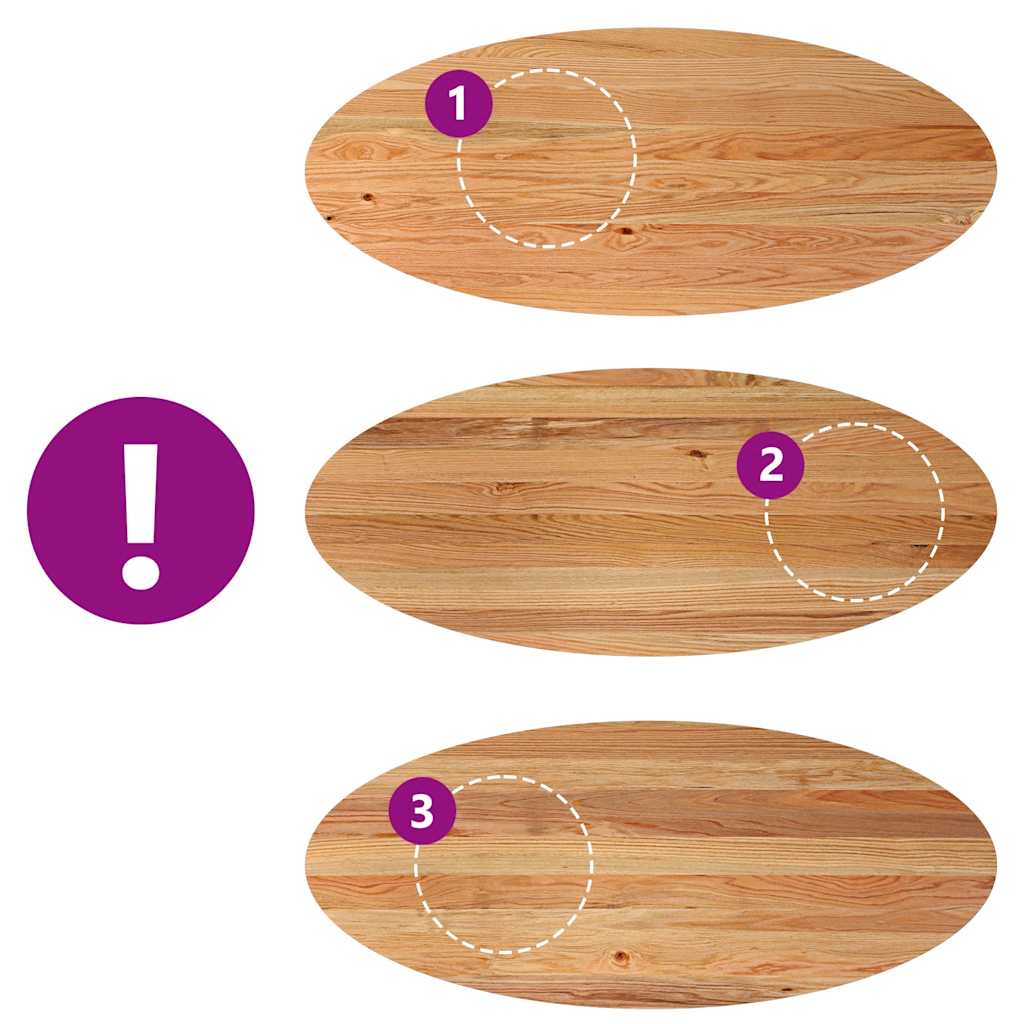 Mach jede Mahlzeit unvergesslich, indem du dich jeden Tag mit deiner Familie oder deinen Freunden um diesen Esstisch aus Holz versammelst! Robustes und langlebiges Material: Massives Eichenholz ist für seine Festigkeit, Haltbarkeit und schöne Maserung bekannt, weshalb es sich hervorragend für haltbare Möbel eignet. Durch seine natürliche Beständigkeit gegen Insektenbefall und Schimmelbildung sehen Eichenmöbel selbst nach jahrelangem Gebrauch brandneu aus.Großer Tisch: Dieser Tisch bietet mit seinen Maßen von 240 x 100 cm viel Platz zum Sitzen und ist das Herzstück deines Essbereichs.Einzigartiger Charme: Da Äste, Risse und Farbabweichungen natürliche Merkmale des Eichenholzes sind, hat jedes Stück dieses Produkts seinen ganz eigenen Charme. Auf den Bildern siehst du Beispiele für die zu erwartenden Variationen.Praktisches Design: Diese Esstischbeine sind mit verstellbaren Nivellierfüßen ausgestattet, die auch auf unebenen Böden für Stabilität sorgen und Bodenkratzer minimieren. Außerdem verfügt die Halterung über vorgebohrte Löcher und mitgelieferte Schrauben, mit denen das Bein an der Tischplatte befestigt werden kann, was die Montage erleichtert.Robustes und stabiles Gestell: Die Beine dieses Esszimmertischs sind aus pulverbeschichtetem Stahl gefertigt, der für außergewöhnliche Stabilität und Sicherheit sorgt. Gut zu wissen:Jedes Stück ist ein Unikat, das in Farbe und Maserung variiert. Die Lieferung erfolgt in zufälliger Reihenfolge, wodurch die Exklusivität und Individualität deines Produkts gewährleistet wird.Äste und kleinere Fehler werden mit schwarzem Füllmaterial aufgefüllt, um eine schöne und glatte Tischoberfläche zu erhalten. Beispiele findest du in den Abbildungen.Die Tischplatte ist an den Rändern 4 cm dick, um ein robustes Aussehen zu gewährleisten, und in der Mitte 2 cm dick, um den Holzverbrauch und das Gesamtgewicht zu reduzieren.Bitte bohre die Löcher in der Mitte, nicht an den Rändern der Platte.Bitte achte darauf, die maximale Bohrtiefe von 15 mm nicht zu überschreiten, um die Tischplatte nicht zu beschädigen, da die Plattenstärke 20 mm beträgt.Wir empfehlen, einen Schraubendreher anstelle einer elektrischen Bohrmaschine zu verwenden, um Holzrisse beim Anbringen der Beine zu vermeiden.