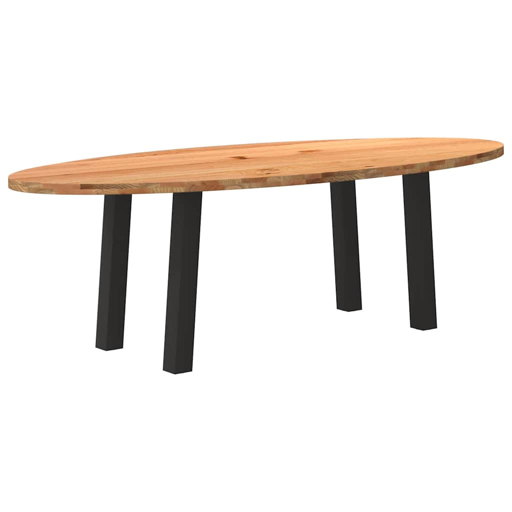 Mach jede Mahlzeit unvergesslich, indem du dich jeden Tag mit deiner Familie oder deinen Freunden um diesen Esstisch aus Holz versammelst! Robustes und langlebiges Material: Massives Eichenholz ist für seine Festigkeit, Haltbarkeit und schöne Maserung bekannt, weshalb es sich hervorragend für haltbare Möbel eignet. Durch seine natürliche Beständigkeit gegen Insektenbefall und Schimmelbildung sehen Eichenmöbel selbst nach jahrelangem Gebrauch brandneu aus.Großer Tisch: Dieser Tisch bietet mit seinen Maßen von 240 x 100 cm viel Platz zum Sitzen und ist das Herzstück deines Essbereichs.Einzigartiger Charme: Da Äste, Risse und Farbabweichungen natürliche Merkmale des Eichenholzes sind, hat jedes Stück dieses Produkts seinen ganz eigenen Charme. Auf den Bildern siehst du Beispiele für die zu erwartenden Variationen.Praktisches Design: Diese Esstischbeine sind mit verstellbaren Nivellierfüßen ausgestattet, die auch auf unebenen Böden für Stabilität sorgen und Bodenkratzer minimieren. Außerdem verfügt die Halterung über vorgebohrte Löcher und mitgelieferte Schrauben, mit denen das Bein an der Tischplatte befestigt werden kann, was die Montage erleichtert.Robustes und stabiles Gestell: Die Beine dieses Esszimmertischs sind aus pulverbeschichtetem Stahl gefertigt, der für außergewöhnliche Stabilität und Sicherheit sorgt. Gut zu wissen:Jedes Stück ist ein Unikat, das in Farbe und Maserung variiert. Die Lieferung erfolgt in zufälliger Reihenfolge, wodurch die Exklusivität und Individualität deines Produkts gewährleistet wird.Äste und kleinere Fehler werden mit schwarzem Füllmaterial aufgefüllt, um eine schöne und glatte Tischoberfläche zu erhalten. Beispiele findest du in den Abbildungen.Die Tischplatte ist an den Rändern 4 cm dick, um ein robustes Aussehen zu gewährleisten, und in der Mitte 2 cm dick, um den Holzverbrauch und das Gesamtgewicht zu reduzieren.Bitte bohre die Löcher in der Mitte, nicht an den Rändern der Platte.Bitte achte darauf, die maximale Bohrtiefe von 15 mm nicht zu überschreiten, um die Tischplatte nicht zu beschädigen, da die Plattenstärke 20 mm beträgt.Wir empfehlen, einen Schraubendreher anstelle einer elektrischen Bohrmaschine zu verwenden, um Holzrisse beim Anbringen der Beine zu vermeiden.