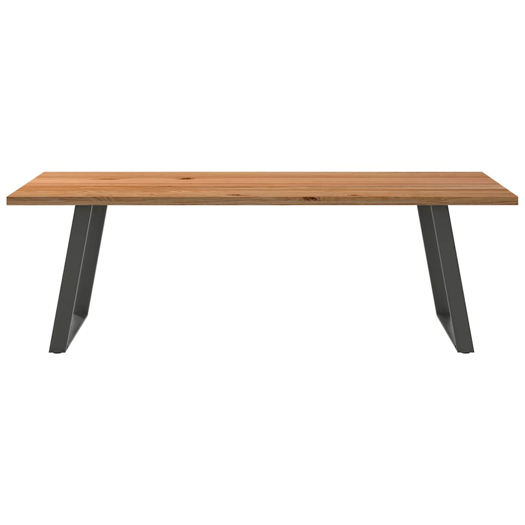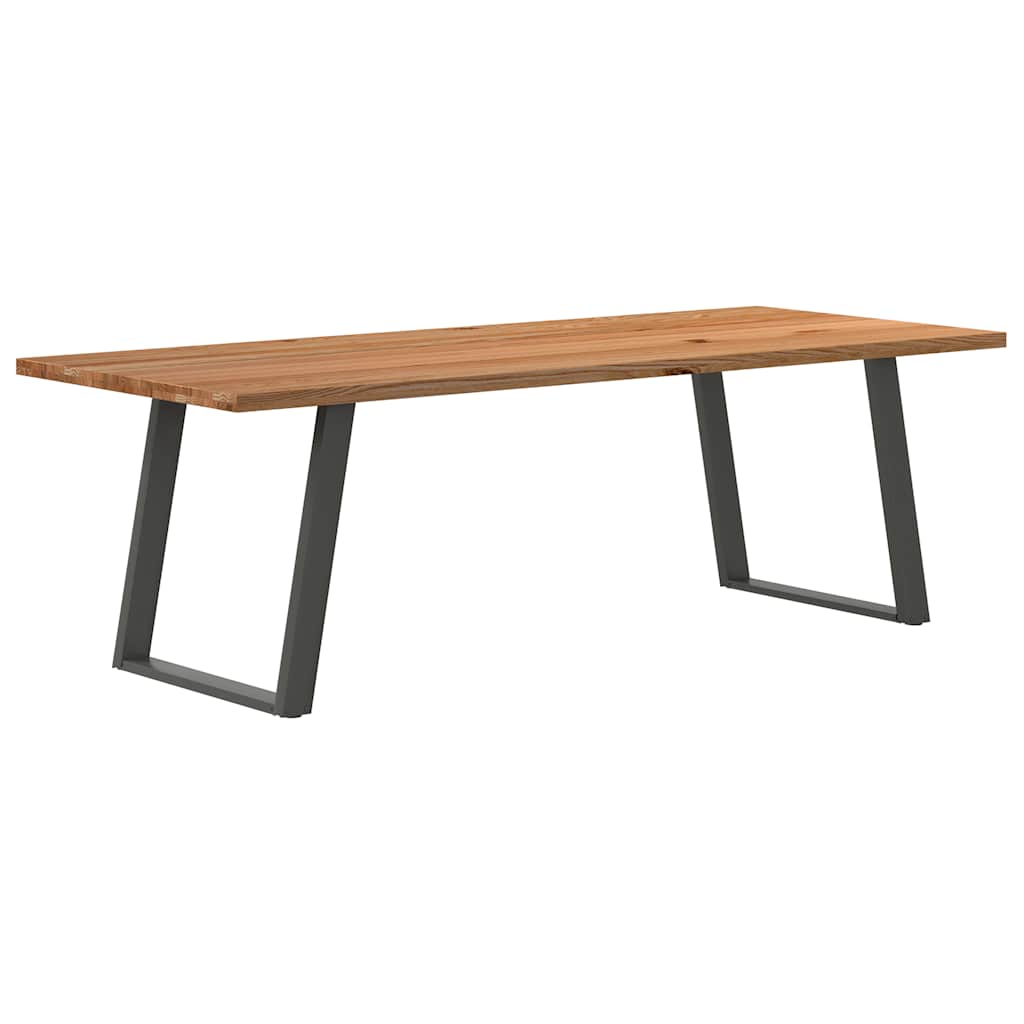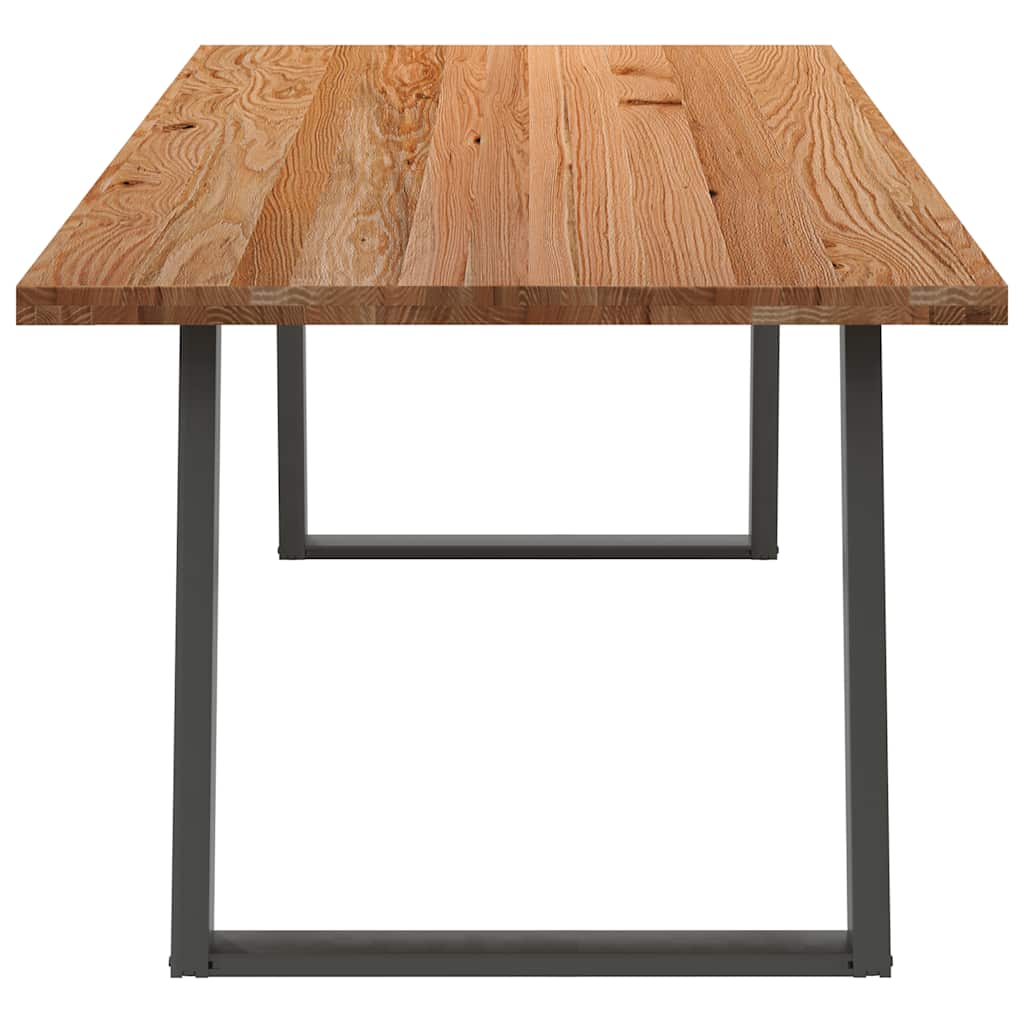 Mach jede Mahlzeit unvergesslich, indem du dich jeden Tag mit deiner Familie oder deinen Freunden um diesen Esstisch aus Holz versammelst! Robustes und langlebiges Material: Massives Eichenholz ist für seine Festigkeit, Haltbarkeit und schöne Maserung bekannt, weshalb es sich hervorragend für haltbare Möbel eignet. Durch seine natürliche Beständigkeit gegen Insektenbefall und Schimmelbildung sehen Eichenmöbel selbst nach jahrelangem Gebrauch brandneu aus.Großer Tisch: Dieser Tisch bietet mit seinen Maßen von 240 x 100 cm viel Platz zum Sitzen und ist das Herzstück deines Essbereichs.Einzigartiger Charme: Da Äste, Risse und Farbabweichungen natürliche Merkmale des Eichenholzes sind, hat jedes Stück dieses Produkts seinen ganz eigenen Charme. Auf den Bildern siehst du Beispiele für die zu erwartenden Variationen.Praktisches Design: Diese Esstischbeine sind mit verstellbaren Nivellierfüßen ausgestattet, die auch auf unebenen Böden für Stabilität sorgen und Bodenkratzer minimieren. Außerdem verfügt die Halterung über vorgebohrte Löcher und mitgelieferte Schrauben, mit denen das Bein an der Tischplatte befestigt werden kann, was die Montage erleichtert.Robustes und stabiles Gestell: Dieser Esszimmertisch hat U-förmige Beine aus pulverbeschichtetem Stahl, die für außergewöhnliche Stabilität und Sicherheit sorgen. Gut zu wissen:Jedes Stück ist ein Unikat, das in Farbe und Maserung variiert. Die Lieferung erfolgt in zufälliger Reihenfolge, wodurch die Exklusivität und Individualität deines Produkts gewährleistet wird.Äste und kleinere Fehler werden mit schwarzem Füllmaterial aufgefüllt, um eine schöne und glatte Tischoberfläche zu erhalten. Beispiele findest du in den Abbildungen.Die Tischplatte ist an den Rändern 4 cm dick, um ein robustes Aussehen zu gewährleisten, und in der Mitte 2 cm dick, um den Holzverbrauch und das Gesamtgewicht zu reduzieren.Bitte bohre die Löcher in der Mitte, nicht an den Rändern der Platte.Bitte achte darauf, die maximale Bohrtiefe von 15 mm nicht zu überschreiten, um die Tischplatte nicht zu beschädigen, da die Plattenstärke 20 mm beträgt.Wir empfehlen, einen Schraubendreher anstelle einer elektrischen Bohrmaschine zu verwenden, um Holzrisse beim Anbringen der Beine zu vermeiden.