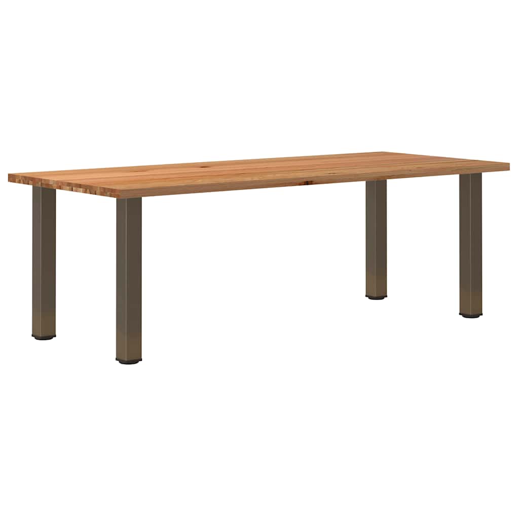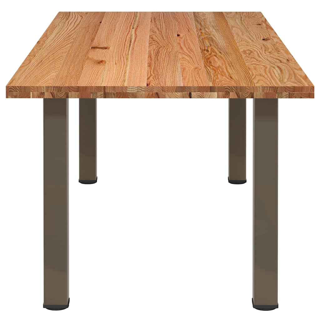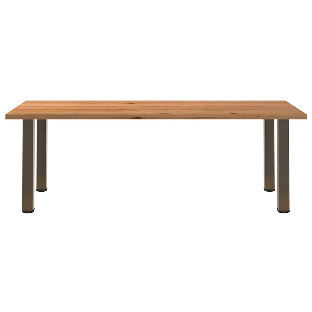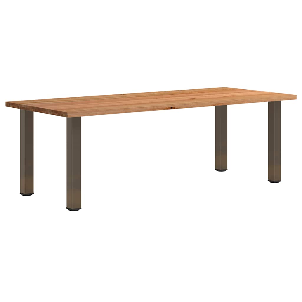 Mach jede Mahlzeit unvergesslich, indem du dich jeden Tag mit deiner Familie oder deinen Freunden um diesen Esstisch aus Holz versammelst!Robustes und langlebiges Material: Massives Eichenholz ist für seine Festigkeit, Haltbarkeit und schöne Maserung bekannt, weshalb es sich hervorragend für haltbare Möbel eignet. Durch seine natürliche Beständigkeit gegen Insektenbefall und Schimmelbildung sehen Eichenmöbel selbst nach jahrelangem Gebrauch brandneu aus.Großer Tisch: Dieser Tisch bietet mit seinen Maßen von 240 x 100 cm viel Platz zum Sitzen und ist das Herzstück deines Essbereichs.Pflegeleicht: Dank ihrer glatten Oberfläche lässt sich die Arbeitsplatte mit einem feuchten Tuch leicht reinigen und erfordert wenig Pflege.Einzigartiger Charme: Da Äste, Risse und Farbabweichungen natürliche Merkmale des Eichenholzes sind, hat jedes Stück dieses Produkts seinen ganz eigenen Charme. Auf den Bildern siehst du Beispiele für die zu erwartenden Variationen.Praktisches Design: Diese Esstischbeine sind mit verstellbaren Nivellierfüßen ausgestattet, die auch auf unebenen Böden für Stabilität sorgen und Bodenkratzer minimieren. Außerdem verfügt die Halterung über vorgebohrte Löcher und mitgelieferte Schrauben, mit denen das Bein an der Tischplatte befestigt werden kann, was die Montage erleichtert.Gut zu wissen:Jedes Stück ist ein Unikat, das in Farbe und Maserung variiert. Die Lieferung erfolgt in zufälliger Reihenfolge, wodurch die Exklusivität und Individualität deines Produkts gewährleistet wird.Äste und kleinere Fehler werden mit schwarzem Füllmaterial aufgefüllt, um eine schöne und glatte Tischoberfläche zu erhalten. Beispiele findest du in den Abbildungen.Die Tischplatte ist an den Rändern 4 cm dick, um ein robustes Aussehen zu gewährleisten, und in der Mitte 2 cm dick, um den Holzverbrauch und das Gesamtgewicht zu reduzieren.Bitte bohre die Löcher in der Mitte, nicht an den Rändern der Platte.Bitte achte darauf, die maximale Bohrtiefe von 15 mm nicht zu überschreiten, um die Tischplatte nicht zu beschädigen, da die Plattenstärke 20 mm beträgt.Wir empfehlen, einen Schraubendreher anstelle einer elektrischen Bohrmaschine zu verwenden, um Holzrisse beim Anbringen der Beine zu vermeiden.