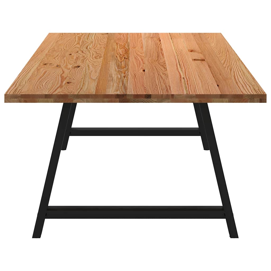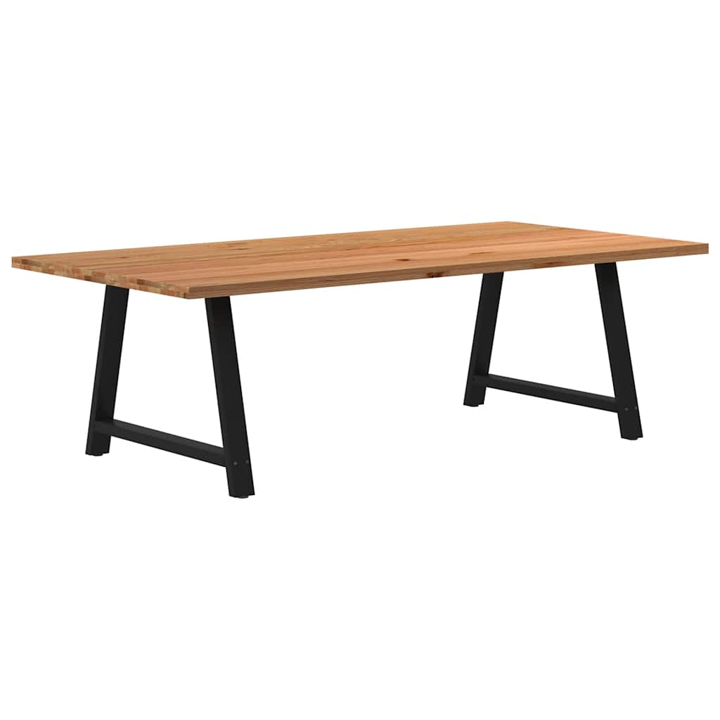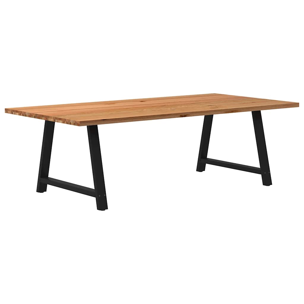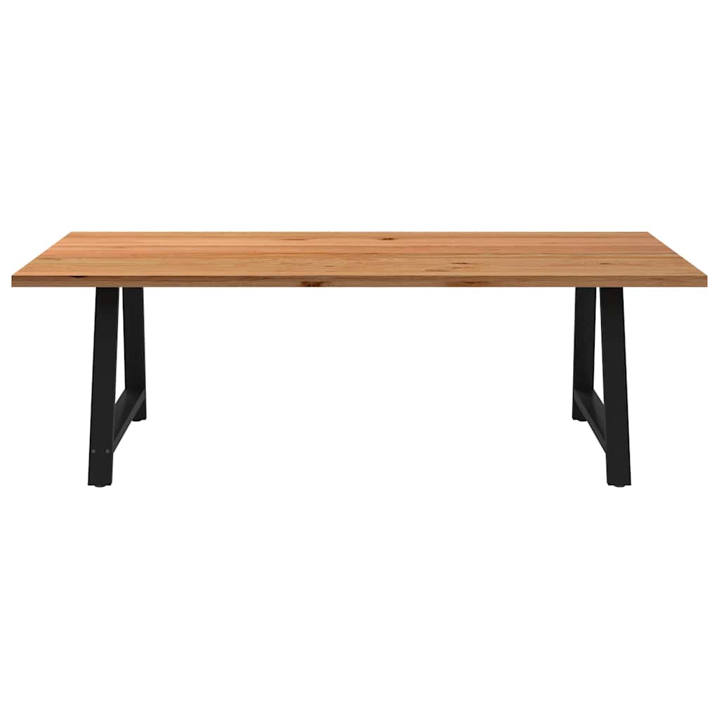 Mach jede Mahlzeit unvergesslich, indem du dich jeden Tag mit deiner Familie oder deinen Freunden um diesen Esstisch aus Holz versammelst! Robustes und langlebiges Material: Massives Eichenholz ist für seine Festigkeit, Haltbarkeit und schöne Maserung bekannt, weshalb es sich hervorragend für haltbare Möbel eignet. Durch seine natürliche Beständigkeit gegen Insektenbefall und Schimmelbildung sehen Eichenmöbel selbst nach jahrelangem Gebrauch brandneu aus.Großer Tisch: Dieser Tisch bietet mit seinen Maßen von 240 x 120 cm viel Platz zum Sitzen und ist das Herzstück deines Essbereichs.Einzigartiger Charme: Da Äste, Risse und Farbabweichungen natürliche Merkmale des Eichenholzes sind, hat jedes Stück dieses Produkts seinen ganz eigenen Charme. Auf den Bildern siehst du Beispiele für die zu erwartenden Variationen.Praktisches Design: Diese Esstischbeine sind mit verstellbaren Nivellierfüßen ausgestattet, die auch auf unebenen Böden für Stabilität sorgen und Bodenkratzer minimieren. Außerdem verfügt die Halterung über vorgebohrte Löcher und mitgelieferte Schrauben, mit denen das Bein an der Tischplatte befestigt werden kann, was die Montage erleichtert.Robustes und stabiles Gestell: Dieser Esszimmertisch hat A-förmige Beine aus pulverbeschichtetem Stahl, die für außergewöhnliche Stabilität und Sicherheit sorgen. Gut zu wissen:Jedes Stück ist ein Unikat, das in Farbe und Maserung variiert. Die Lieferung erfolgt in zufälliger Reihenfolge, wodurch die Exklusivität und Individualität deines Produkts gewährleistet wird.Äste und kleinere Fehler werden mit schwarzem Füllmaterial aufgefüllt, um eine schöne und glatte Tischoberfläche zu erhalten. Beispiele findest du in den Abbildungen.Die Tischplatte ist an den Rändern 4 cm dick, um ein robustes Aussehen zu gewährleisten, und in der Mitte 2 cm dick, um den Holzverbrauch und das Gesamtgewicht zu reduzieren.Bitte bohre die Löcher in der Mitte, nicht an den Rändern der Platte.Bitte achte darauf, die maximale Bohrtiefe von 15 mm nicht zu überschreiten, um die Tischplatte nicht zu beschädigen, da die Plattenstärke 20 mm beträgt.Wir empfehlen, einen Schraubendreher anstelle einer elektrischen Bohrmaschine zu verwenden, um Holzrisse beim Anbringen der Beine zu vermeiden.