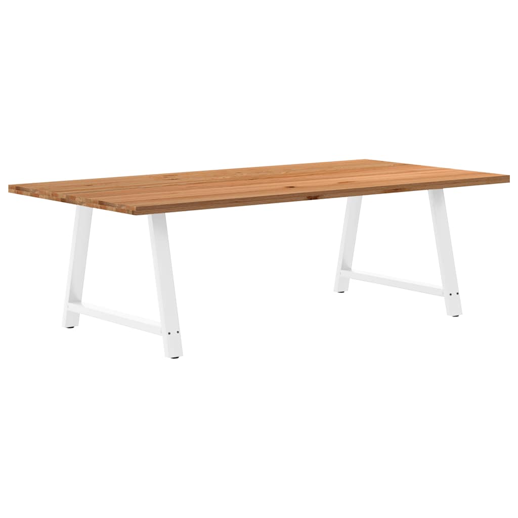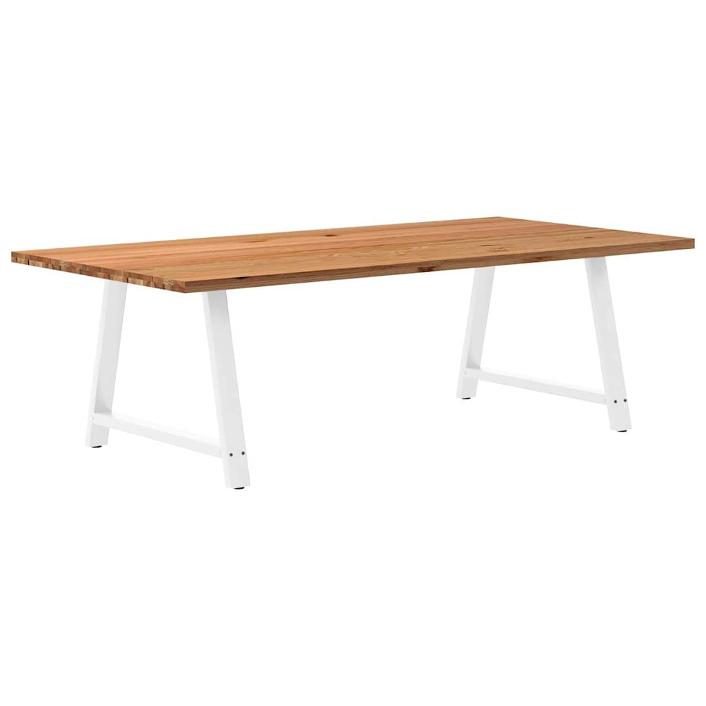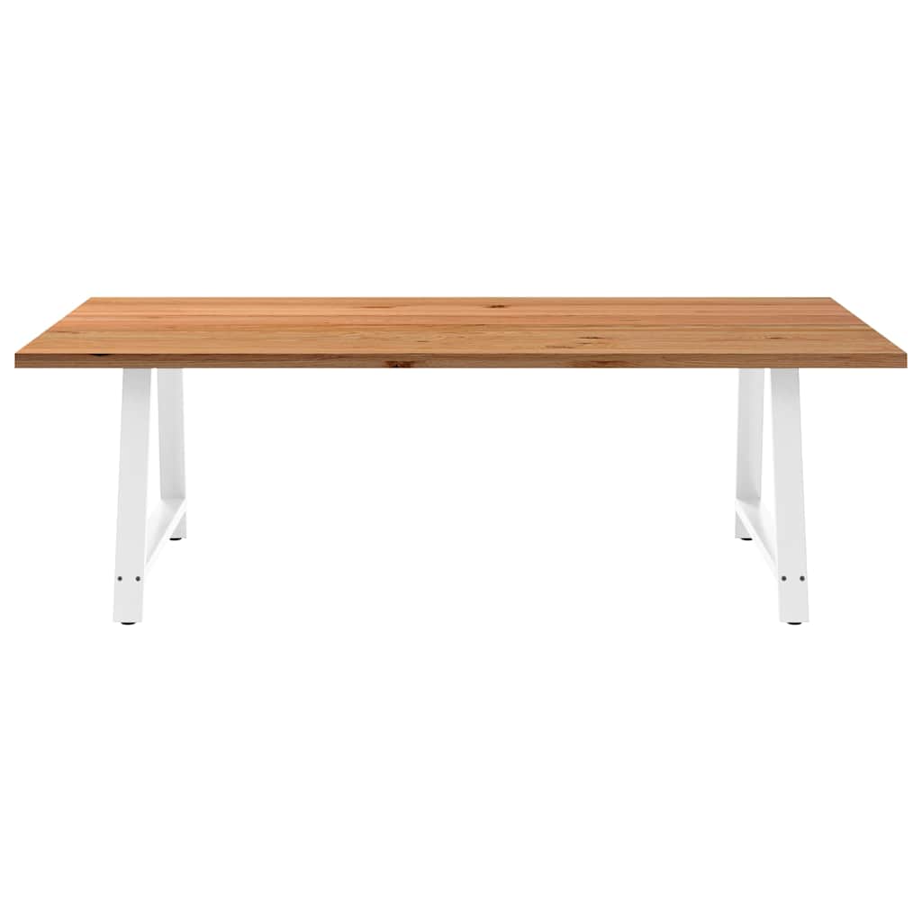 Mach jede Mahlzeit unvergesslich, indem du dich jeden Tag mit deiner Familie oder deinen Freunden um diesen Esstisch aus Holz versammelst! Robustes und langlebiges Material: Massives Eichenholz ist für seine Festigkeit, Haltbarkeit und schöne Maserung bekannt, weshalb es sich hervorragend für haltbare Möbel eignet. Durch seine natürliche Beständigkeit gegen Insektenbefall und Schimmelbildung sehen Eichenmöbel selbst nach jahrelangem Gebrauch brandneu aus.Großer Tisch: Dieser Tisch bietet mit seinen Maßen von 240 x 120 cm viel Platz zum Sitzen und ist das Herzstück deines Essbereichs.Einzigartiger Charme: Da Äste, Risse und Farbabweichungen natürliche Merkmale des Eichenholzes sind, hat jedes Stück dieses Produkts seinen ganz eigenen Charme. Auf den Bildern siehst du Beispiele für die zu erwartenden Variationen.Praktisches Design: Diese Esstischbeine sind mit verstellbaren Nivellierfüßen ausgestattet, die auch auf unebenen Böden für Stabilität sorgen und Bodenkratzer minimieren. Außerdem verfügt die Halterung über vorgebohrte Löcher und mitgelieferte Schrauben, mit denen das Bein an der Tischplatte befestigt werden kann, was die Montage erleichtert.Robustes und stabiles Gestell: Dieser Esszimmertisch hat A-förmige Beine aus pulverbeschichtetem Stahl, die für außergewöhnliche Stabilität und Sicherheit sorgen. Gut zu wissen:Jedes Stück ist ein Unikat, das in Farbe und Maserung variiert. Die Lieferung erfolgt in zufälliger Reihenfolge, wodurch die Exklusivität und Individualität deines Produkts gewährleistet wird.Äste und kleinere Fehler werden mit schwarzem Füllmaterial aufgefüllt, um eine schöne und glatte Tischoberfläche zu erhalten. Beispiele findest du in den Abbildungen.Die Tischplatte ist an den Rändern 4 cm dick, um ein robustes Aussehen zu gewährleisten, und in der Mitte 2 cm dick, um den Holzverbrauch und das Gesamtgewicht zu reduzieren.Bitte bohre die Löcher in der Mitte, nicht an den Rändern der Platte.Bitte achte darauf, die maximale Bohrtiefe von 15 mm nicht zu überschreiten, um die Tischplatte nicht zu beschädigen, da die Plattenstärke 20 mm beträgt.Wir empfehlen, einen Schraubendreher anstelle einer elektrischen Bohrmaschine zu verwenden, um Holzrisse beim Anbringen der Beine zu vermeiden.
