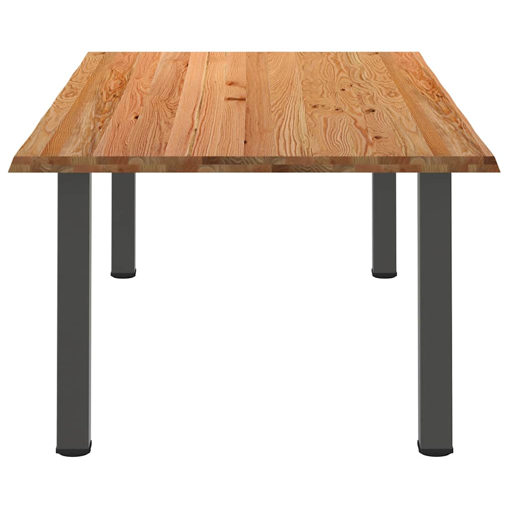 Mach jede Mahlzeit unvergesslich, indem du dich jeden Tag mit deiner Familie oder deinen Freunden um diesen Esstisch aus Holz versammelst! Robustes und langlebiges Material: Massives Eichenholz ist für seine Festigkeit, Haltbarkeit und schöne Maserung bekannt, weshalb es sich hervorragend für haltbare Möbel eignet. Durch seine natürliche Beständigkeit gegen Insektenbefall und Schimmelbildung sehen Eichenmöbel selbst nach jahrelangem Gebrauch brandneu aus.Großer Tisch: Dieser Tisch bietet mit seinen Maßen von 240 x 120 cm viel Platz zum Sitzen und ist das Herzstück deines Essbereichs.Naturkanten: Diese Tischplatte hat geschwungene Kanten, die von der natürlichen Form eines Baumes inspiriert sind und deinem Tisch eine charmante Note verleihen.Einzigartiger Charme: Da Äste, Risse und Farbabweichungen natürliche Merkmale des Eichenholzes sind, hat jedes Stück dieses Produkts seinen ganz eigenen Charme. Auf den Bildern siehst du Beispiele für die zu erwartenden Variationen.Praktisches Design: Diese Esstischbeine sind mit verstellbaren Nivellierfüßen ausgestattet, die auch auf unebenen Böden für Stabilität sorgen und Bodenkratzer minimieren. Außerdem verfügt die Halterung über vorgebohrte Löcher und mitgelieferte Schrauben, mit denen das Bein an der Tischplatte befestigt werden kann, was die Montage erleichtert. Gut zu wissen:Jedes Stück ist ein Unikat, das in Farbe und Maserung variiert. Die Lieferung erfolgt in zufälliger Reihenfolge, wodurch die Exklusivität und Individualität deines Produkts gewährleistet wird.Äste und kleinere Fehler werden mit schwarzem Füllmaterial aufgefüllt, um eine schöne und glatte Tischoberfläche zu erhalten. Beispiele findest du in den Abbildungen.Die Tischplatte ist an den Rändern 4 cm dick, um ein robustes Aussehen zu gewährleisten, und in der Mitte 2 cm dick, um den Holzverbrauch und das Gesamtgewicht zu reduzieren.Bitte bohre die Löcher in der Mitte, nicht an den Rändern der Platte.Bitte achte darauf, die maximale Bohrtiefe von 15 mm nicht zu überschreiten, um die Tischplatte nicht zu beschädigen, da die Plattenstärke 20 mm beträgt.Wir empfehlen, einen Schraubendreher anstelle einer elektrischen Bohrmaschine zu verwenden, um Holzrisse beim Anbringen der Beine zu vermeiden.