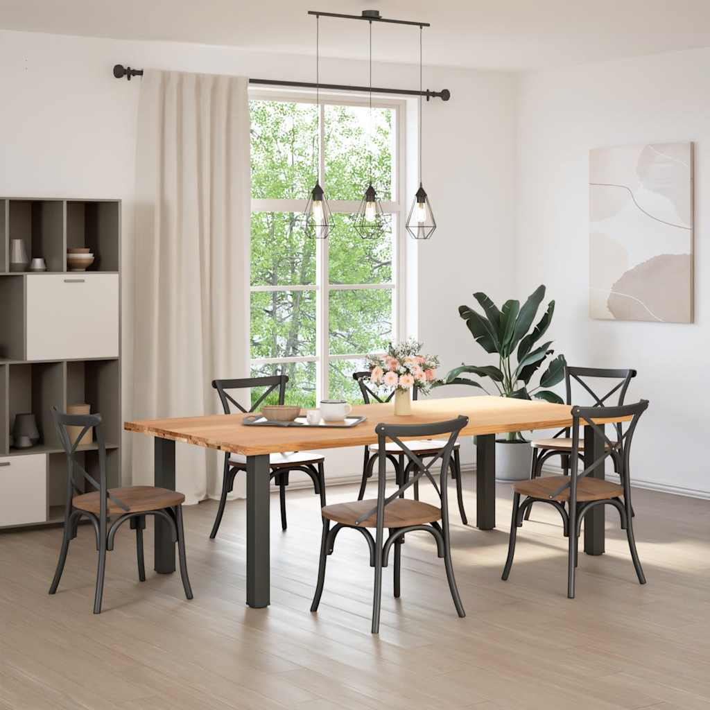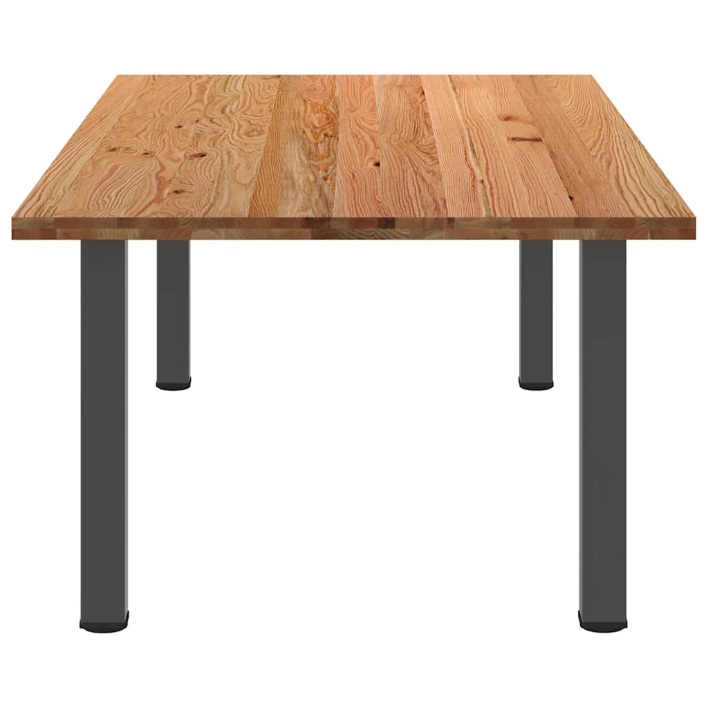 Mach jede Mahlzeit unvergesslich, indem du dich jeden Tag mit deiner Familie oder deinen Freunden um diesen Esstisch aus Holz versammelst!Robustes und langlebiges Material: Massives Eichenholz ist für seine Festigkeit, Haltbarkeit und schöne Maserung bekannt, weshalb es sich hervorragend für haltbare Möbel eignet. Durch seine natürliche Beständigkeit gegen Insektenbefall und Schimmelbildung sehen Eichenmöbel selbst nach jahrelangem Gebrauch brandneu aus.Großer Tisch: Dieser Tisch bietet mit seinen Maßen von 240 x 120 cm viel Platz zum Sitzen und ist das Herzstück deines Essbereichs.Pflegeleicht: Dank ihrer glatten Oberfläche lässt sich die Arbeitsplatte mit einem feuchten Tuch leicht reinigen und erfordert wenig Pflege.Einzigartiger Charme: Da Äste, Risse und Farbabweichungen natürliche Merkmale des Eichenholzes sind, hat jedes Stück dieses Produkts seinen ganz eigenen Charme. Auf den Bildern siehst du Beispiele für die zu erwartenden Variationen.Praktisches Design: Diese Esstischbeine sind mit verstellbaren Nivellierfüßen ausgestattet, die auch auf unebenen Böden für Stabilität sorgen und Bodenkratzer minimieren. Außerdem verfügt die Halterung über vorgebohrte Löcher und mitgelieferte Schrauben, mit denen das Bein an der Tischplatte befestigt werden kann, was die Montage erleichtert.Gut zu wissen:Jedes Stück ist ein Unikat, das in Farbe und Maserung variiert. Die Lieferung erfolgt in zufälliger Reihenfolge, wodurch die Exklusivität und Individualität deines Produkts gewährleistet wird.Äste und kleinere Fehler werden mit schwarzem Füllmaterial aufgefüllt, um eine schöne und glatte Tischoberfläche zu erhalten. Beispiele findest du in den Abbildungen.Die Tischplatte ist an den Rändern 4 cm dick, um ein robustes Aussehen zu gewährleisten, und in der Mitte 2 cm dick, um den Holzverbrauch und das Gesamtgewicht zu reduzieren.Bitte bohre die Löcher in der Mitte, nicht an den Rändern der Platte.Bitte achte darauf, die maximale Bohrtiefe von 15 mm nicht zu überschreiten, um die Tischplatte nicht zu beschädigen, da die Plattenstärke 20 mm beträgt.Wir empfehlen, einen Schraubendreher anstelle einer elektrischen Bohrmaschine zu verwenden, um Holzrisse beim Anbringen der Beine zu vermeiden.