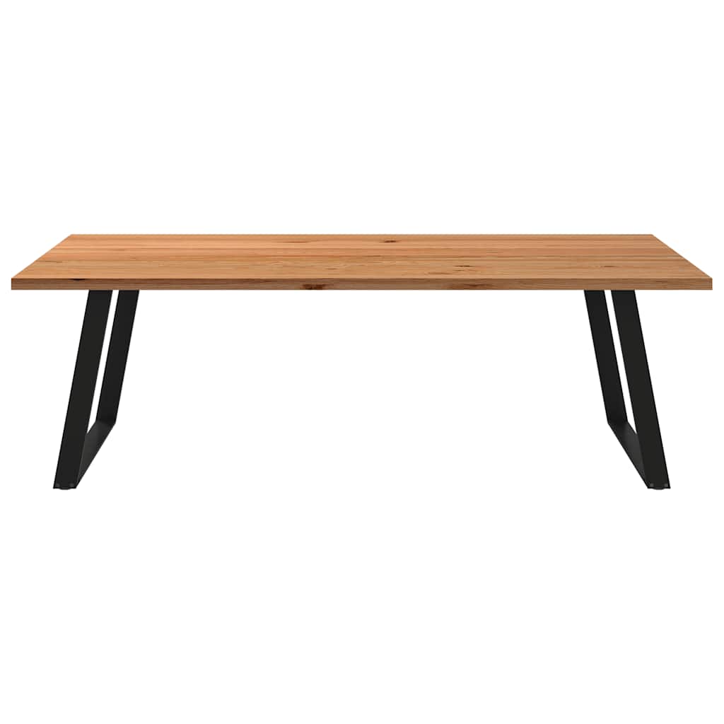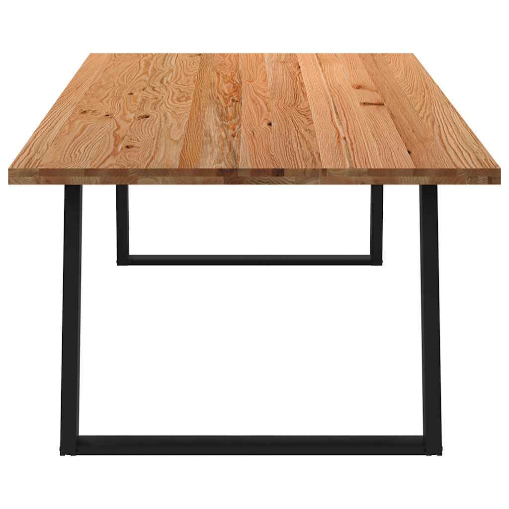 Mach jede Mahlzeit unvergesslich, indem du dich jeden Tag mit deiner Familie oder deinen Freunden um diesen Esstisch aus Holz versammelst! Robustes und langlebiges Material: Massives Eichenholz ist für seine Festigkeit, Haltbarkeit und schöne Maserung bekannt, weshalb es sich hervorragend für haltbare Möbel eignet. Durch seine natürliche Beständigkeit gegen Insektenbefall und Schimmelbildung sehen Eichenmöbel selbst nach jahrelangem Gebrauch brandneu aus.Großer Tisch: Dieser Tisch bietet mit seinen Maßen von 240 x 120 cm viel Platz zum Sitzen und ist das Herzstück deines Essbereichs.Einzigartiger Charme: Da Äste, Risse und Farbabweichungen natürliche Merkmale des Eichenholzes sind, hat jedes Stück dieses Produkts seinen ganz eigenen Charme. Auf den Bildern siehst du Beispiele für die zu erwartenden Variationen.Praktisches Design: Diese Esstischbeine sind mit verstellbaren Nivellierfüßen ausgestattet, die auch auf unebenen Böden für Stabilität sorgen und Bodenkratzer minimieren. Außerdem verfügt die Halterung über vorgebohrte Löcher und mitgelieferte Schrauben, mit denen das Bein an der Tischplatte befestigt werden kann, was die Montage erleichtert.Robustes und stabiles Gestell: Dieser Esszimmertisch hat U-förmige Beine aus pulverbeschichtetem Stahl, die für außergewöhnliche Stabilität und Sicherheit sorgen. Gut zu wissen:Jedes Stück ist ein Unikat, das in Farbe und Maserung variiert. Die Lieferung erfolgt in zufälliger Reihenfolge, wodurch die Exklusivität und Individualität deines Produkts gewährleistet wird.Äste und kleinere Fehler werden mit schwarzem Füllmaterial aufgefüllt, um eine schöne und glatte Tischoberfläche zu erhalten. Beispiele findest du in den Abbildungen.Die Tischplatte ist an den Rändern 4 cm dick, um ein robustes Aussehen zu gewährleisten, und in der Mitte 2 cm dick, um den Holzverbrauch und das Gesamtgewicht zu reduzieren.Bitte bohre die Löcher in der Mitte, nicht an den Rändern der Platte.Bitte achte darauf, die maximale Bohrtiefe von 15 mm nicht zu überschreiten, um die Tischplatte nicht zu beschädigen, da die Plattenstärke 20 mm beträgt.Wir empfehlen, einen Schraubendreher anstelle einer elektrischen Bohrmaschine zu verwenden, um Holzrisse beim Anbringen der Beine zu vermeiden.
