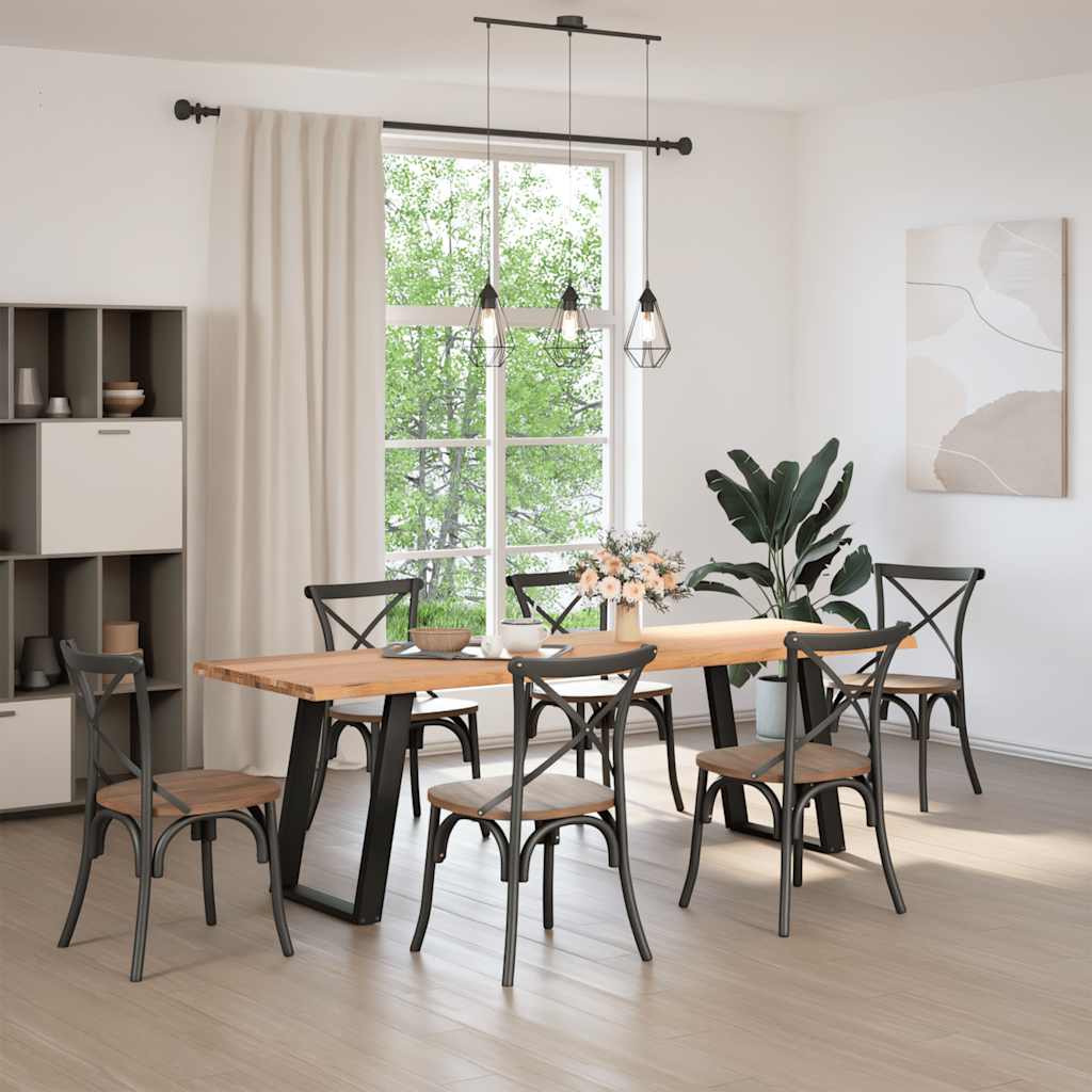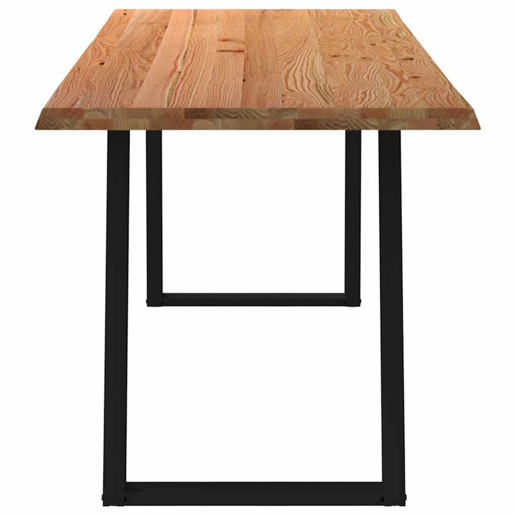 Mach jede Mahlzeit unvergesslich, indem du dich jeden Tag mit deiner Familie oder deinen Freunden um diesen Esstisch aus Holz versammelst! Robustes und langlebiges Material: Massives Eichenholz ist für seine Festigkeit, Haltbarkeit und schöne Maserung bekannt, weshalb es sich hervorragend für haltbare Möbel eignet. Durch seine natürliche Beständigkeit gegen Insektenbefall und Schimmelbildung sehen Eichenmöbel selbst nach jahrelangem Gebrauch brandneu aus.Großer Tisch: Dieser Küchentisch bietet mit seinen Maßen von 240 x 80 cm viel Platz zum Sitzen und ist das Herzstück deines Essbereichs.Naturkanten: Diese Tischplatte hat geschwungene Kanten, die von der natürlichen Form eines Baumes inspiriert sind und deinem Tisch eine charmante Note verleihen.Einzigartiger Charme: Da Äste, Risse und Farbabweichungen natürliche Merkmale des Eichenholzes sind, hat jedes Stück dieses Produkts seinen ganz eigenen Charme. Auf den Bildern siehst du Beispiele für die zu erwartenden Variationen.Praktisches Design: Diese Esstischbeine sind mit verstellbaren Nivellierfüßen ausgestattet, die auch auf unebenen Böden für Stabilität sorgen und Bodenkratzer minimieren. Außerdem verfügt die Halterung über vorgebohrte Löcher und mitgelieferte Schrauben, mit denen das Bein an der Tischplatte befestigt werden kann, was die Montage erleichtert. Gut zu wissen:Jedes Stück ist ein Unikat, das in Farbe und Maserung variiert. Die Lieferung erfolgt in zufälliger Reihenfolge, wodurch die Exklusivität und Individualität deines Produkts gewährleistet wird.Äste und kleinere Fehler werden mit schwarzem Füllmaterial aufgefüllt, um eine schöne und glatte Tischoberfläche zu erhalten. Beispiele findest du in den Abbildungen.Die Tischplatte ist an den Rändern 4 cm dick, um ein robustes Aussehen zu gewährleisten, und in der Mitte 2 cm dick, um den Holzverbrauch und das Gesamtgewicht zu reduzieren.Bitte bohre die Löcher in der Mitte, nicht an den Rändern der Platte.Bitte achte darauf, die maximale Bohrtiefe von 15 mm nicht zu überschreiten, um die Tischplatte nicht zu beschädigen, da die Plattenstärke 20 mm beträgt.Wir empfehlen, einen Schraubendreher anstelle einer elektrischen Bohrmaschine zu verwenden, um Holzrisse beim Anbringen der Beine zu vermeiden.