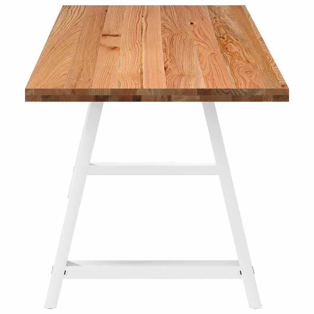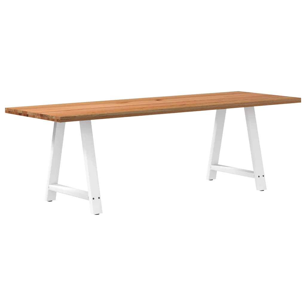 Mach jede Mahlzeit unvergesslich, indem du dich jeden Tag mit deiner Familie oder deinen Freunden um diesen Esstisch aus Holz versammelst! Robustes und langlebiges Material: Massives Eichenholz ist für seine Festigkeit, Haltbarkeit und schöne Maserung bekannt, weshalb es sich hervorragend für haltbare Möbel eignet. Durch seine natürliche Beständigkeit gegen Insektenbefall und Schimmelbildung sehen Eichenmöbel selbst nach jahrelangem Gebrauch brandneu aus.Großer Tisch: Dieser Tisch bietet mit seinen Maßen von 240 x 80 cm viel Platz zum Sitzen und ist das Herzstück deines Essbereichs.Einzigartiger Charme: Da Äste, Risse und Farbabweichungen natürliche Merkmale des Eichenholzes sind, hat jedes Stück dieses Produkts seinen ganz eigenen Charme. Auf den Bildern siehst du Beispiele für die zu erwartenden Variationen.Praktisches Design: Diese Esstischbeine sind mit verstellbaren Nivellierfüßen ausgestattet, die auch auf unebenen Böden für Stabilität sorgen und Bodenkratzer minimieren. Außerdem verfügt die Halterung über vorgebohrte Löcher und mitgelieferte Schrauben, mit denen das Bein an der Tischplatte befestigt werden kann, was die Montage erleichtert.Robustes und stabiles Gestell: Dieser Esszimmertisch hat A-förmige Beine aus pulverbeschichtetem Stahl, die für außergewöhnliche Stabilität und Sicherheit sorgen. Gut zu wissen:Jedes Stück ist ein Unikat, das in Farbe und Maserung variiert. Die Lieferung erfolgt in zufälliger Reihenfolge, wodurch die Exklusivität und Individualität deines Produkts gewährleistet wird.Äste und kleinere Fehler werden mit schwarzem Füllmaterial aufgefüllt, um eine schöne und glatte Tischoberfläche zu erhalten. Beispiele findest du in den Abbildungen.Die Tischplatte ist an den Rändern 4 cm dick, um ein robustes Aussehen zu gewährleisten, und in der Mitte 2 cm dick, um den Holzverbrauch und das Gesamtgewicht zu reduzieren.Bitte bohre die Löcher in der Mitte, nicht an den Rändern der Platte.Bitte achte darauf, die maximale Bohrtiefe von 15 mm nicht zu überschreiten, um die Tischplatte nicht zu beschädigen, da die Plattenstärke 20 mm beträgt.Wir empfehlen, einen Schraubendreher anstelle einer elektrischen Bohrmaschine zu verwenden, um Holzrisse beim Anbringen der Beine zu vermeiden.