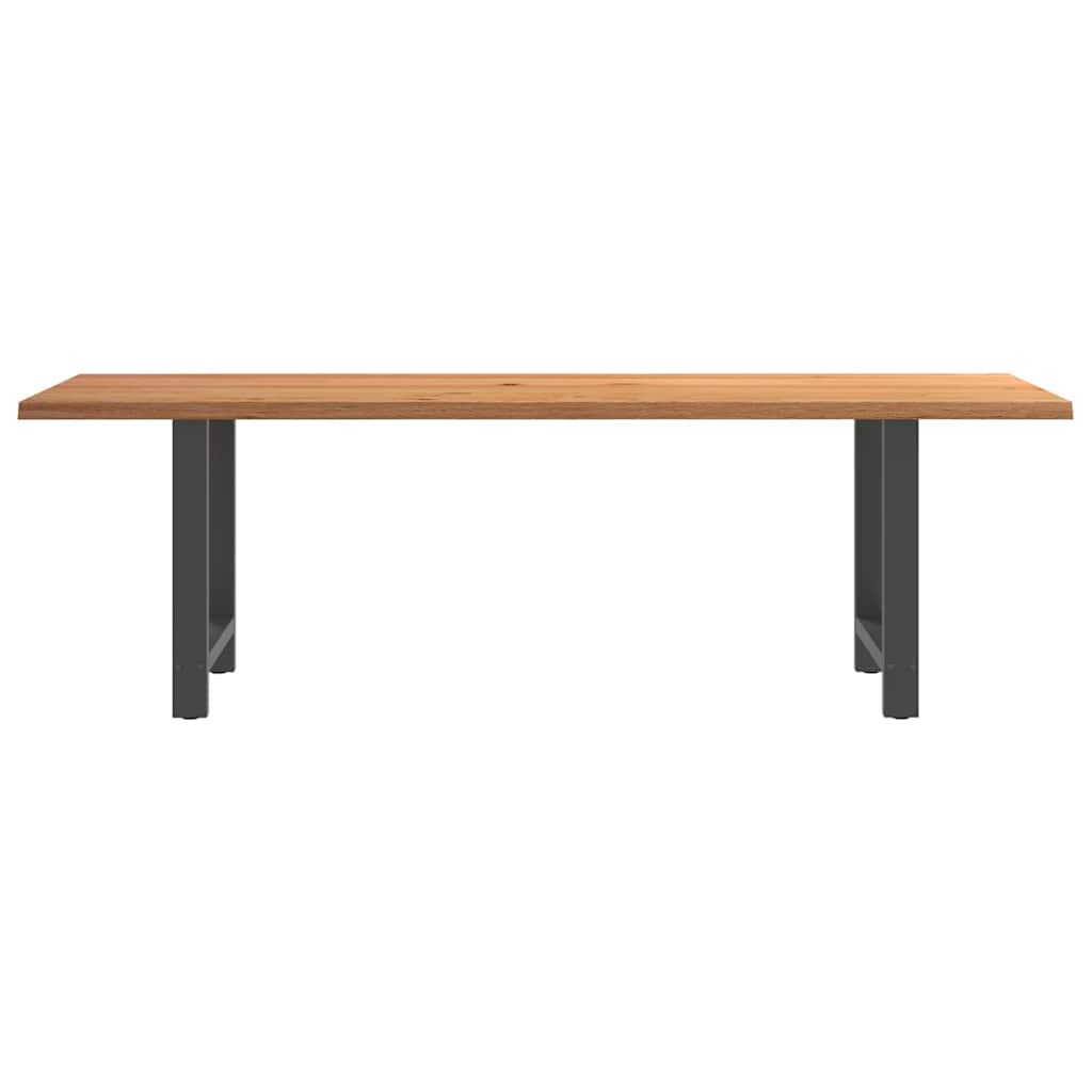 Mach jede Mahlzeit unvergesslich, indem du dich jeden Tag mit deiner Familie oder deinen Freunden um diesen Esstisch aus Holz versammelst! Robustes und langlebiges Material: Massives Eichenholz ist für seine Festigkeit, Haltbarkeit und schöne Maserung bekannt, weshalb es sich hervorragend für haltbare Möbel eignet. Durch seine natürliche Beständigkeit gegen Insektenbefall und Schimmelbildung sehen Eichenmöbel selbst nach jahrelangem Gebrauch brandneu aus.Großer Tisch: Dieser Tisch bietet mit seinen Maßen von 240 x 80 cm viel Platz zum Sitzen und ist das Herzstück deines Essbereichs.Einzigartiger Charme: Da Äste, Risse und Farbabweichungen natürliche Merkmale des Eichenholzes sind, hat jedes Stück dieses Produkts seinen ganz eigenen Charme. Auf den Bildern siehst du Beispiele für die zu erwartenden Variationen.Praktisches Design: Diese Esstischbeine sind mit verstellbaren Nivellierfüßen ausgestattet, die auch auf unebenen Böden für Stabilität sorgen und Bodenkratzer minimieren. Außerdem verfügt die Halterung über vorgebohrte Löcher und mitgelieferte Schrauben, mit denen das Bein an der Tischplatte befestigt werden kann, was die Montage erleichtert.Robustes und stabiles Gestell: Dieser Esszimmertisch hat H-förmige Beine aus pulverbeschichtetem Stahl, die für außergewöhnliche Stabilität und Sicherheit sorgen. Gut zu wissen:Jedes Stück ist ein Unikat, das in Farbe und Maserung variiert. Die Lieferung erfolgt in zufälliger Reihenfolge, wodurch die Exklusivität und Individualität deines Produkts gewährleistet wird.Äste und kleinere Fehler werden mit schwarzem Füllmaterial aufgefüllt, um eine schöne und glatte Tischoberfläche zu erhalten. Beispiele findest du in den Abbildungen.Die Tischplatte ist an den Rändern 4 cm dick, um ein robustes Aussehen zu gewährleisten, und in der Mitte 2 cm dick, um den Holzverbrauch und das Gesamtgewicht zu reduzieren.Bitte bohre die Löcher in der Mitte, nicht an den Rändern der Platte.Bitte achte darauf, die maximale Bohrtiefe von 15 mm nicht zu überschreiten, um die Tischplatte nicht zu beschädigen, da die Plattenstärke 20 mm beträgt.Wir empfehlen, einen Schraubendreher anstelle einer elektrischen Bohrmaschine zu verwenden, um Holzrisse beim Anbringen der Beine zu vermeiden.