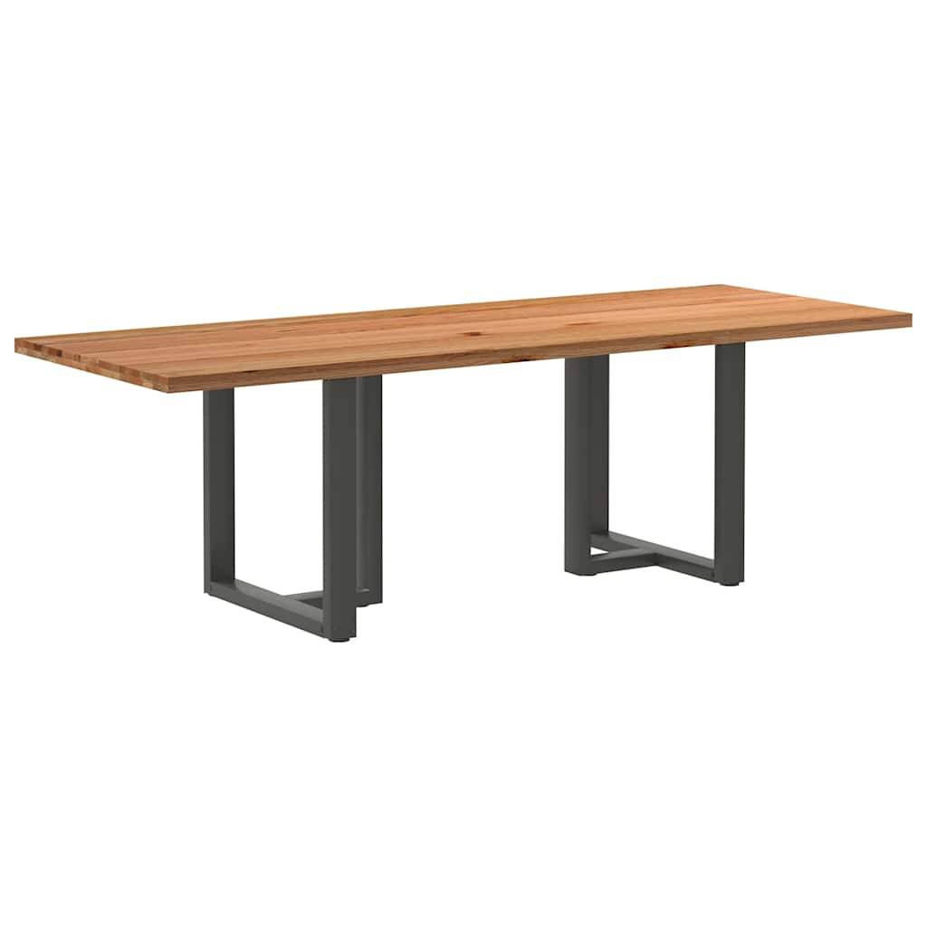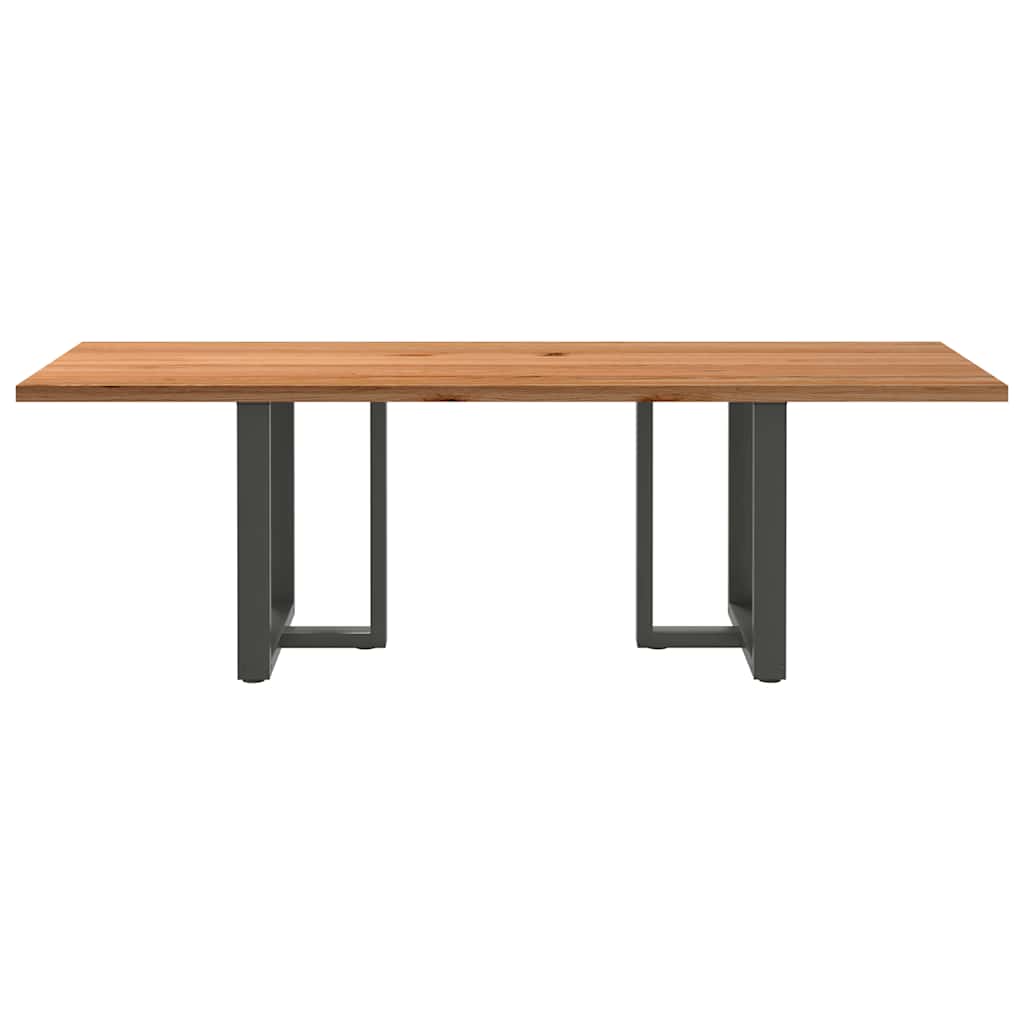 Mach jede Mahlzeit unvergesslich, indem du dich jeden Tag mit deiner Familie oder deinen Freunden um diesen Esstisch aus Holz versammelst! Robustes und langlebiges Material: Massives Eichenholz ist für seine Festigkeit, Haltbarkeit und schöne Maserung bekannt, weshalb es sich hervorragend für haltbare Möbel eignet. Durch seine natürliche Beständigkeit gegen Insektenbefall und Schimmelbildung sehen Eichenmöbel selbst nach jahrelangem Gebrauch brandneu aus.Großer Tisch: Dieser Küchentisch bietet mit seinen Maßen von 240 x 90 cm viel Platz zum Sitzen und ist das Herzstück deines Essbereichs.Einzigartiger Charme: Da Äste, Risse und Farbabweichungen natürliche Merkmale des Eichenholzes sind, hat jedes Stück dieses Produkts seinen ganz eigenen Charme. Auf den Bildern siehst du Beispiele für die zu erwartenden Variationen.Praktisches Design: Diese Esstischbeine sind mit verstellbaren Nivellierfüßen ausgestattet, die auch auf unebenen Böden für Stabilität sorgen und Bodenkratzer minimieren. Außerdem verfügt die Halterung über vorgebohrte Löcher und mitgelieferte Schrauben, mit denen das Bein an der Tischplatte befestigt werden kann, was die Montage erleichtert. Gut zu wissen:Jedes Stück ist ein Unikat, das in Farbe und Maserung variiert. Die Lieferung erfolgt in zufälliger Reihenfolge, wodurch die Exklusivität und Individualität deines Produkts gewährleistet wird.Äste und kleinere Fehler werden mit schwarzem Füllmaterial aufgefüllt, um eine schöne und glatte Tischoberfläche zu erhalten. Beispiele findest du in den Abbildungen.Die Tischplatte ist an den Rändern 4 cm dick, um ein robustes Aussehen zu gewährleisten, und in der Mitte 2 cm dick, um den Holzverbrauch und das Gesamtgewicht zu reduzieren.Bitte bohre die Löcher in der Mitte, nicht an den Rändern der Platte.Bitte achte darauf, die maximale Bohrtiefe von 15 mm nicht zu überschreiten, um die Tischplatte nicht zu beschädigen, da die Plattenstärke 20 mm beträgt.Wir empfehlen, einen Schraubendreher anstelle einer elektrischen Bohrmaschine zu verwenden, um Holzrisse beim Anbringen der Beine zu vermeiden.