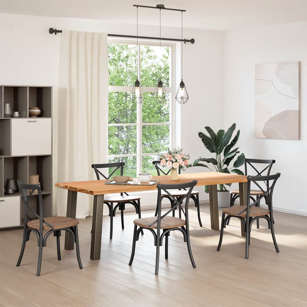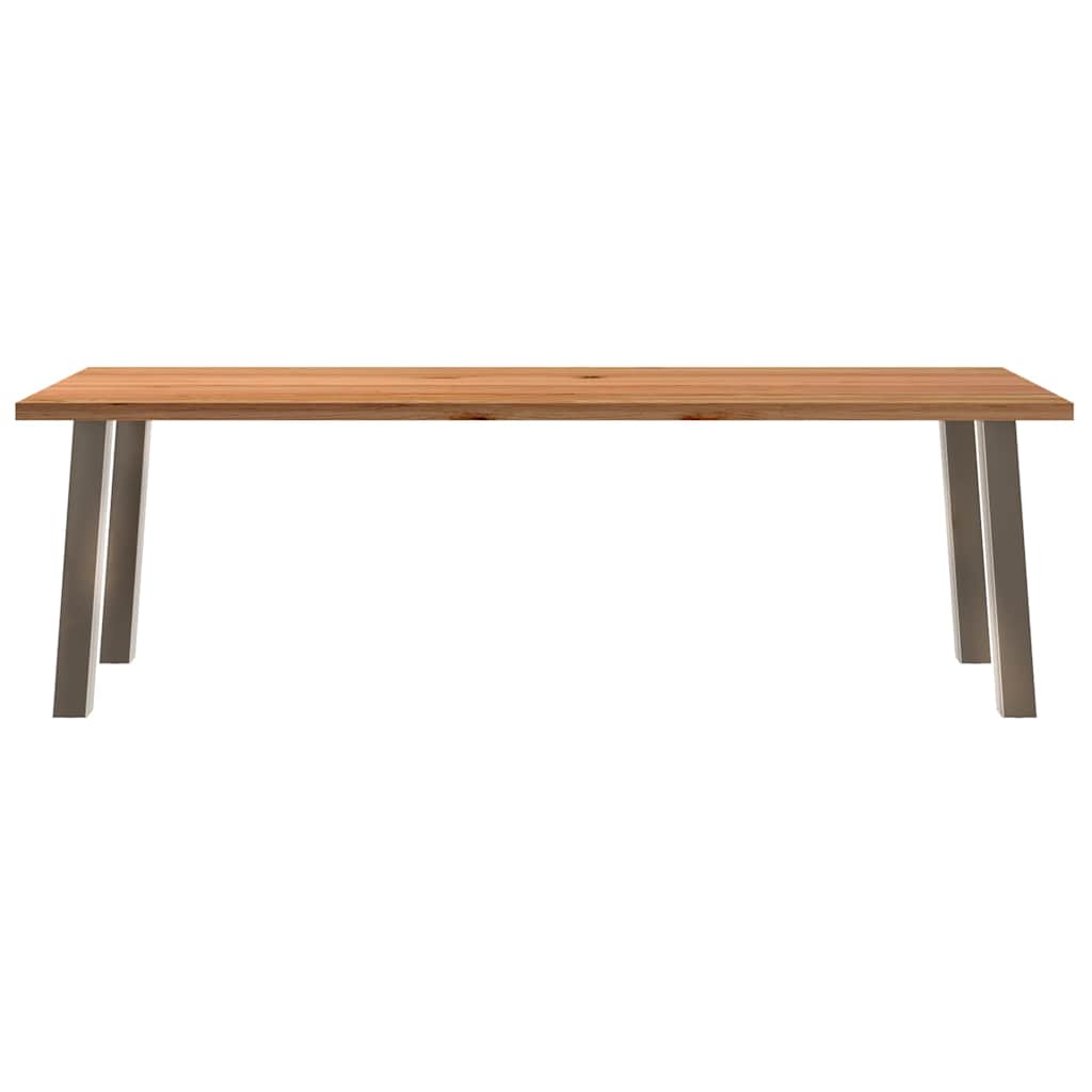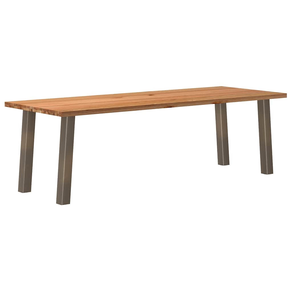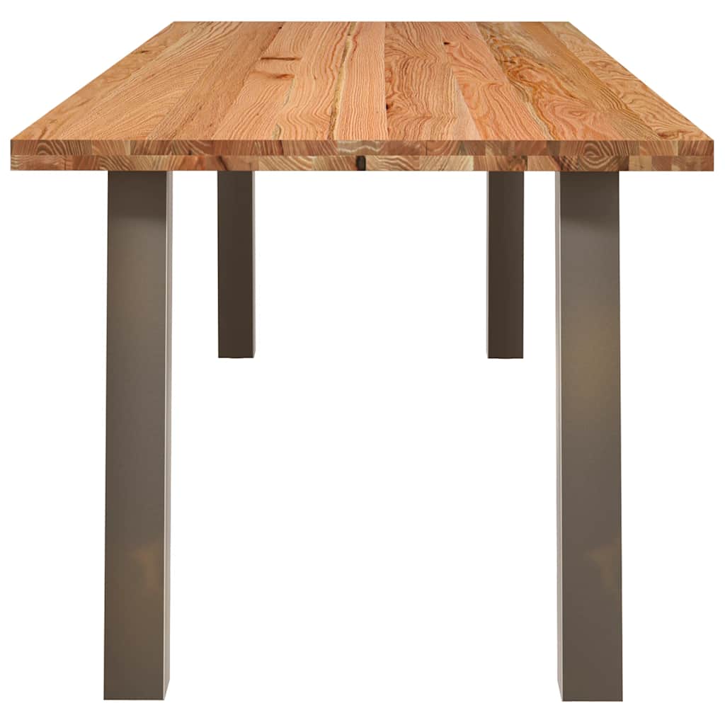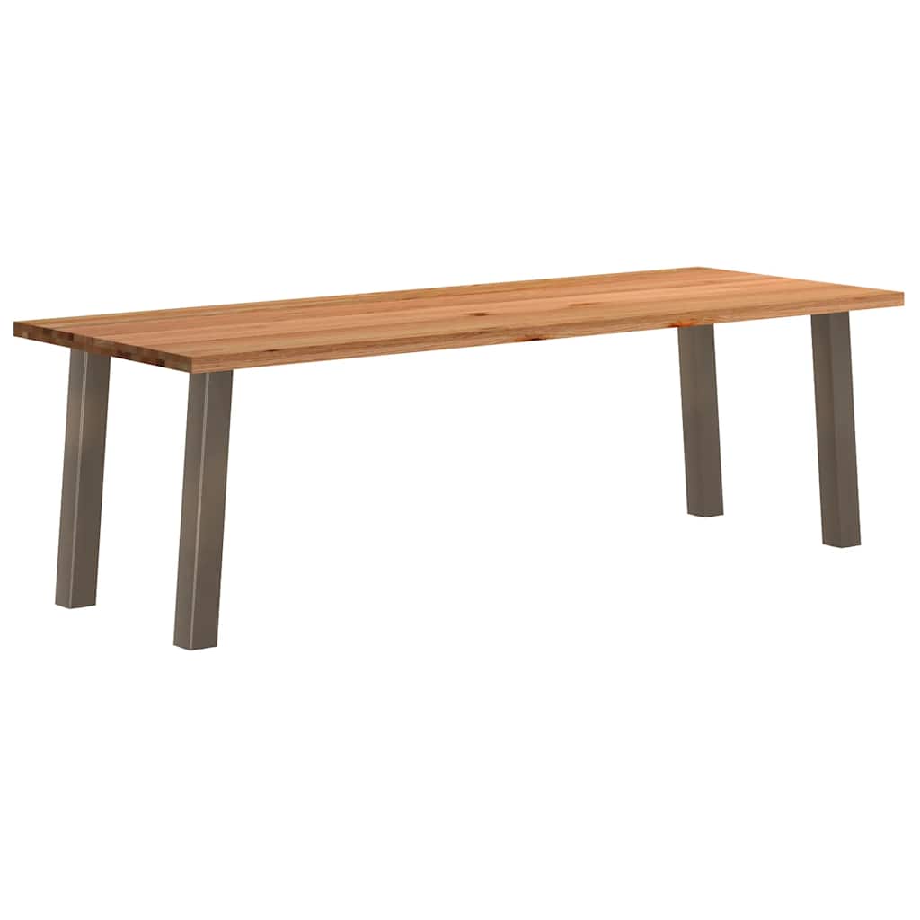 Mach jede Mahlzeit unvergesslich, indem du dich jeden Tag mit deiner Familie oder deinen Freunden um diesen Esstisch aus Holz versammelst!Robustes und langlebiges Material: Massives Eichenholz ist für seine Festigkeit, Haltbarkeit und schöne Maserung bekannt, weshalb es sich hervorragend für haltbare Möbel eignet. Durch seine natürliche Beständigkeit gegen Insektenbefall und Schimmelbildung sehen Eichenmöbel selbst nach jahrelangem Gebrauch brandneu aus.Großer Tisch: Dieser Tisch bietet mit seinen Maßen von 240 x 90 cm viel Platz zum Sitzen und ist das Herzstück deines Essbereichs.Pflegeleicht: Dank ihrer glatten Oberfläche lässt sich die Arbeitsplatte mit einem feuchten Tuch leicht reinigen und erfordert wenig Pflege.Einzigartiger Charme: Da Äste, Risse und Farbabweichungen natürliche Merkmale des Eichenholzes sind, hat jedes Stück dieses Produkts seinen ganz eigenen Charme. Auf den Bildern siehst du Beispiele für die zu erwartenden Variationen.Gut zu wissen:Jedes Stück ist ein Unikat, das in Farbe und Maserung variiert. Die Lieferung erfolgt in zufälliger Reihenfolge, wodurch die Exklusivität und Individualität deines Produkts gewährleistet wird.Äste und kleinere Fehler werden mit schwarzem Füllmaterial aufgefüllt, um eine schöne und glatte Tischoberfläche zu erhalten. Beispiele findest du in den Abbildungen.Die Tischplatte ist an den Rändern 4 cm dick, um ein robustes Aussehen zu gewährleisten, und in der Mitte 2 cm dick, um den Holzverbrauch und das Gesamtgewicht zu reduzieren.Bitte bohre die Löcher in der Mitte, nicht an den Rändern der Platte.Bitte achte darauf, die maximale Bohrtiefe von 15 mm nicht zu überschreiten, um die Tischplatte nicht zu beschädigen, da die Plattenstärke 20 mm beträgt.Wir empfehlen, einen Schraubendreher anstelle einer elektrischen Bohrmaschine zu verwenden, um Holzrisse beim Anbringen der Beine zu vermeiden.
