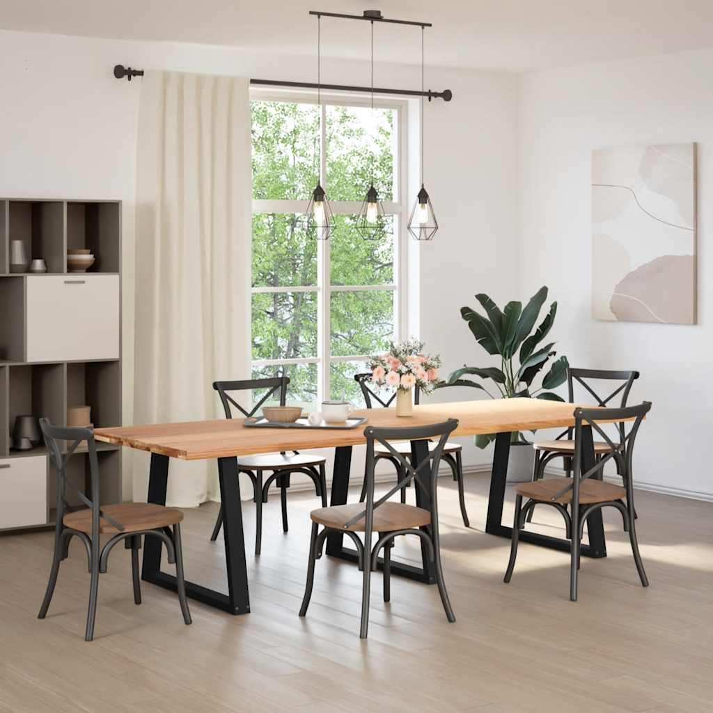 Mach jede Mahlzeit unvergesslich, indem du dich jeden Tag mit deiner Familie oder deinen Freunden um diesen Esstisch aus Holz versammelst! Robustes und langlebiges Material: Massives Eichenholz ist für seine Festigkeit, Haltbarkeit und schöne Maserung bekannt, weshalb es sich hervorragend für haltbare Möbel eignet. Durch seine natürliche Beständigkeit gegen Insektenbefall und Schimmelbildung sehen Eichenmöbel selbst nach jahrelangem Gebrauch brandneu aus.Großer Tisch: Dieser Küchentisch bietet mit seinen Maßen von 280 x 100 cm viel Platz zum Sitzen und ist das Herzstück deines Essbereichs.Einzigartiger Charme: Da Äste, Risse und Farbabweichungen natürliche Merkmale des Eichenholzes sind, hat jedes Stück dieses Produkts seinen ganz eigenen Charme. Auf den Bildern siehst du Beispiele für die zu erwartenden Variationen.Praktisches Design: Diese Esstischbeine sind mit verstellbaren Nivellierfüßen ausgestattet, die auch auf unebenen Böden für Stabilität sorgen und Bodenkratzer minimieren. Außerdem verfügt die Halterung über vorgebohrte Löcher und mitgelieferte Schrauben, mit denen das Bein an der Tischplatte befestigt werden kann, was die Montage erleichtert. Gut zu wissen:Jedes Stück ist ein Unikat, das in Farbe und Maserung variiert. Die Lieferung erfolgt in zufälliger Reihenfolge, wodurch die Exklusivität und Individualität deines Produkts gewährleistet wird.Äste und kleinere Fehler werden mit schwarzem Füllmaterial aufgefüllt, um eine schöne und glatte Tischoberfläche zu erhalten. Beispiele findest du in den Abbildungen.Die Tischplatte ist an den Rändern 4 cm dick, um ein robustes Aussehen zu gewährleisten, und in der Mitte 2 cm dick, um den Holzverbrauch und das Gesamtgewicht zu reduzieren.Bitte bohre die Löcher in der Mitte, nicht an den Rändern der Platte.Bitte achte darauf, die maximale Bohrtiefe von 15 mm nicht zu überschreiten, um die Tischplatte nicht zu beschädigen, da die Plattenstärke 20 mm beträgt.Wir empfehlen, einen Schraubendreher anstelle einer elektrischen Bohrmaschine zu verwenden, um Holzrisse beim Anbringen der Beine zu vermeiden.