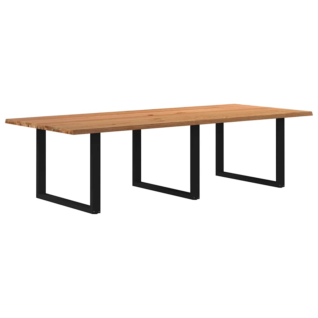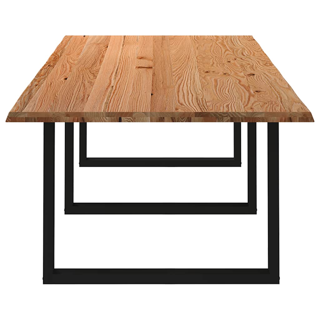 Mach jede Mahlzeit unvergesslich, indem du dich jeden Tag mit deiner Familie oder deinen Freunden um diesen Esstisch aus Holz versammelst! Robustes und langlebiges Material: Massives Eichenholz ist für seine Festigkeit, Haltbarkeit und schöne Maserung bekannt, weshalb es sich hervorragend für haltbare Möbel eignet. Durch seine natürliche Beständigkeit gegen Insektenbefall und Schimmelbildung sehen Eichenmöbel selbst nach jahrelangem Gebrauch brandneu aus.Großer Tisch: Dieser Tisch bietet mit seinen Maßen von 280 x 120 cm viel Platz zum Sitzen und ist das Herzstück deines Essbereichs.Naturkanten: Diese Tischplatte hat geschwungene Kanten, die von der natürlichen Form eines Baumes inspiriert sind und deinem Tisch eine charmante Note verleihen.Einzigartiger Charme: Da Äste, Risse und Farbabweichungen natürliche Merkmale des Eichenholzes sind, hat jedes Stück dieses Produkts seinen ganz eigenen Charme. Auf den Bildern siehst du Beispiele für die zu erwartenden Variationen.Praktisches Design: Diese Esstischbeine sind mit verstellbaren Nivellierfüßen ausgestattet, die auch auf unebenen Böden für Stabilität sorgen und Bodenkratzer minimieren. Außerdem verfügt die Halterung über vorgebohrte Löcher und mitgelieferte Schrauben, mit denen das Bein an der Tischplatte befestigt werden kann, was die Montage erleichtert. Gut zu wissen:Jedes Stück ist ein Unikat, das in Farbe und Maserung variiert. Die Lieferung erfolgt in zufälliger Reihenfolge, wodurch die Exklusivität und Individualität deines Produkts gewährleistet wird.Äste und kleinere Fehler werden mit schwarzem Füllmaterial aufgefüllt, um eine schöne und glatte Tischoberfläche zu erhalten. Beispiele findest du in den Abbildungen.Die Tischplatte ist an den Rändern 4 cm dick, um ein robustes Aussehen zu gewährleisten, und in der Mitte 2 cm dick, um den Holzverbrauch und das Gesamtgewicht zu reduzieren.Bitte bohre die Löcher in der Mitte, nicht an den Rändern der Platte.Bitte achte darauf, die maximale Bohrtiefe von 15 mm nicht zu überschreiten, um die Tischplatte nicht zu beschädigen, da die Plattenstärke 20 mm beträgt.Wir empfehlen, einen Schraubendreher anstelle einer elektrischen Bohrmaschine zu verwenden, um Holzrisse beim Anbringen der Beine zu vermeiden.