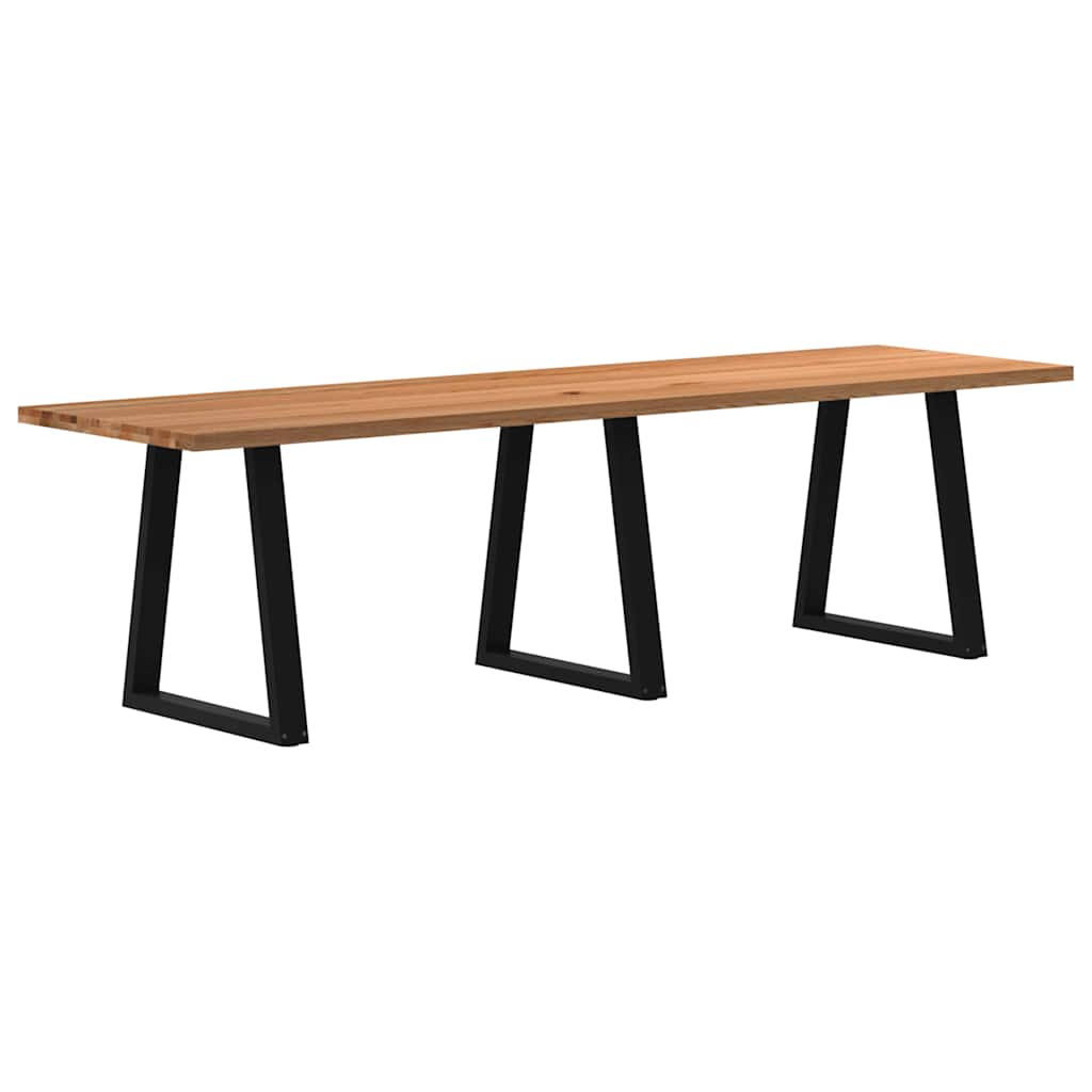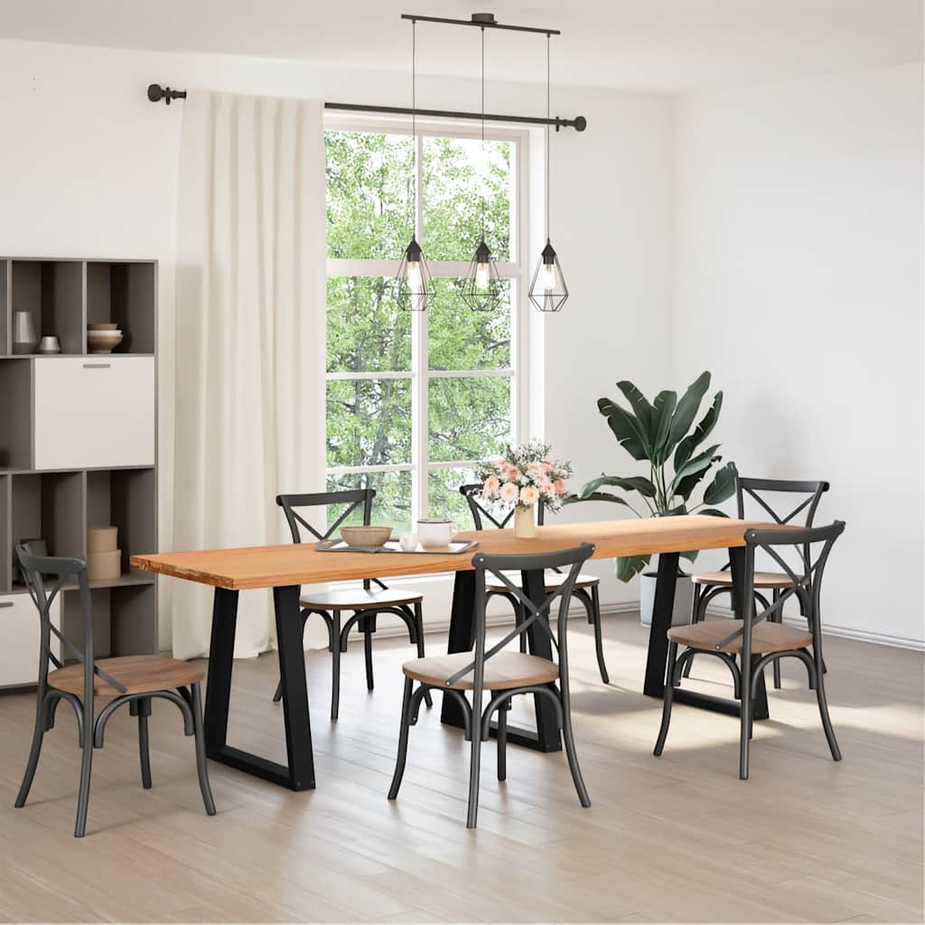 Mach jede Mahlzeit unvergesslich, indem du dich jeden Tag mit deiner Familie oder deinen Freunden um diesen Esstisch aus Holz versammelst! Robustes und langlebiges Material: Massives Eichenholz ist für seine Festigkeit, Haltbarkeit und schöne Maserung bekannt, weshalb es sich hervorragend für haltbare Möbel eignet. Durch seine natürliche Beständigkeit gegen Insektenbefall und Schimmelbildung sehen Eichenmöbel selbst nach jahrelangem Gebrauch brandneu aus.Großer Tisch: Dieser Küchentisch bietet mit seinen Maßen von 280 x 90 cm viel Platz zum Sitzen und ist das Herzstück deines Essbereichs.Einzigartiger Charme: Da Äste, Risse und Farbabweichungen natürliche Merkmale des Eichenholzes sind, hat jedes Stück dieses Produkts seinen ganz eigenen Charme. Auf den Bildern siehst du Beispiele für die zu erwartenden Variationen.Praktisches Design: Diese Esstischbeine sind mit verstellbaren Nivellierfüßen ausgestattet, die auch auf unebenen Böden für Stabilität sorgen und Bodenkratzer minimieren. Außerdem verfügt die Halterung über vorgebohrte Löcher und mitgelieferte Schrauben, mit denen das Bein an der Tischplatte befestigt werden kann, was die Montage erleichtert. Gut zu wissen:Jedes Stück ist ein Unikat, das in Farbe und Maserung variiert. Die Lieferung erfolgt in zufälliger Reihenfolge, wodurch die Exklusivität und Individualität deines Produkts gewährleistet wird.Äste und kleinere Fehler werden mit schwarzem Füllmaterial aufgefüllt, um eine schöne und glatte Tischoberfläche zu erhalten. Beispiele findest du in den Abbildungen.Die Tischplatte ist an den Rändern 4 cm dick, um ein robustes Aussehen zu gewährleisten, und in der Mitte 2 cm dick, um den Holzverbrauch und das Gesamtgewicht zu reduzieren.Bitte bohre die Löcher in der Mitte, nicht an den Rändern der Platte.Bitte achte darauf, die maximale Bohrtiefe von 15 mm nicht zu überschreiten, um die Tischplatte nicht zu beschädigen, da die Plattenstärke 20 mm beträgt.Wir empfehlen, einen Schraubendreher anstelle einer elektrischen Bohrmaschine zu verwenden, um Holzrisse beim Anbringen der Beine zu vermeiden.