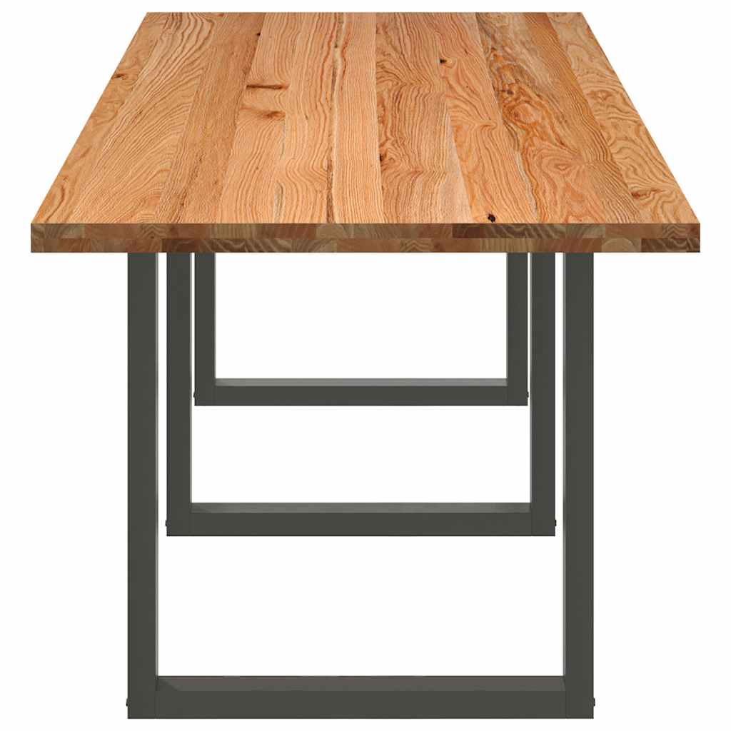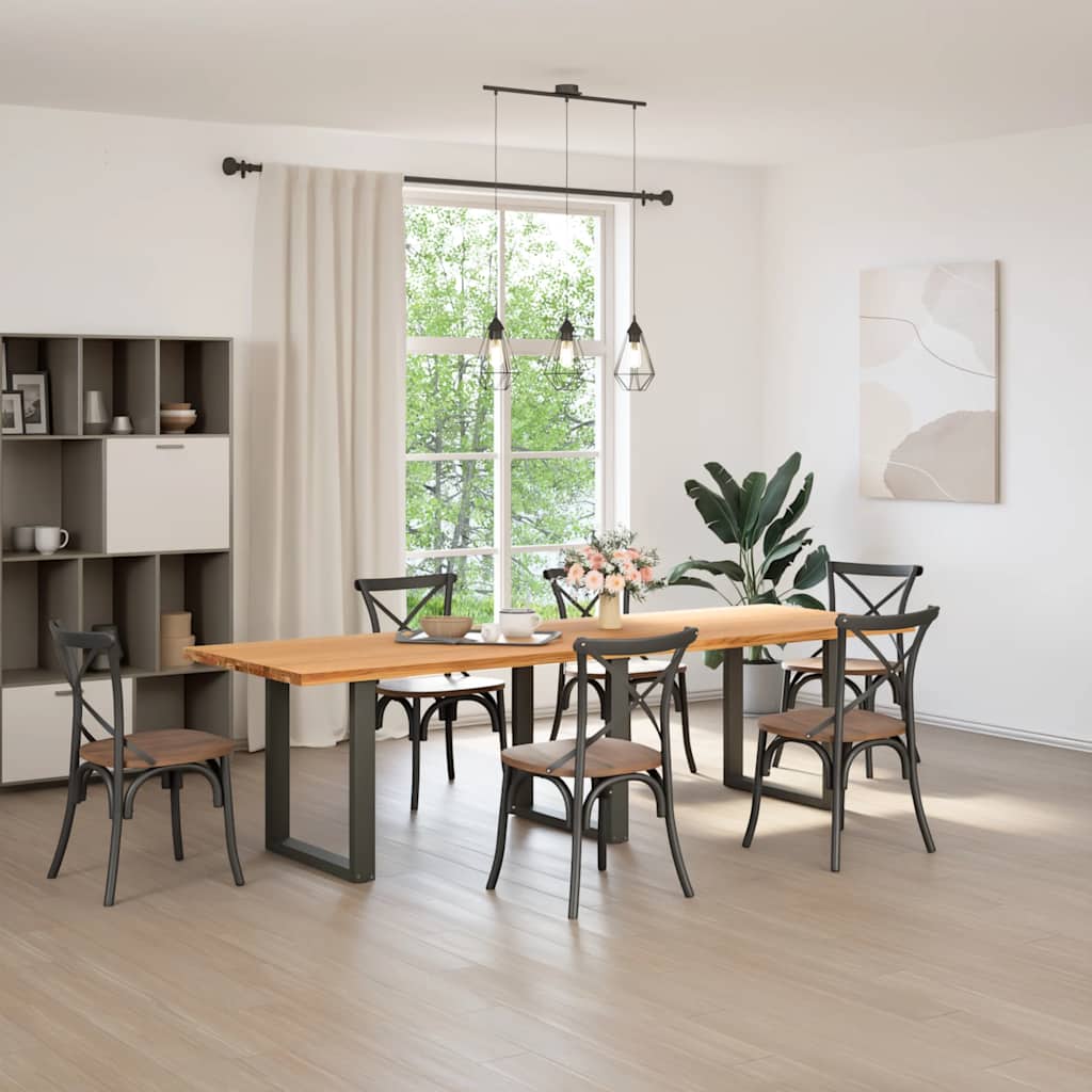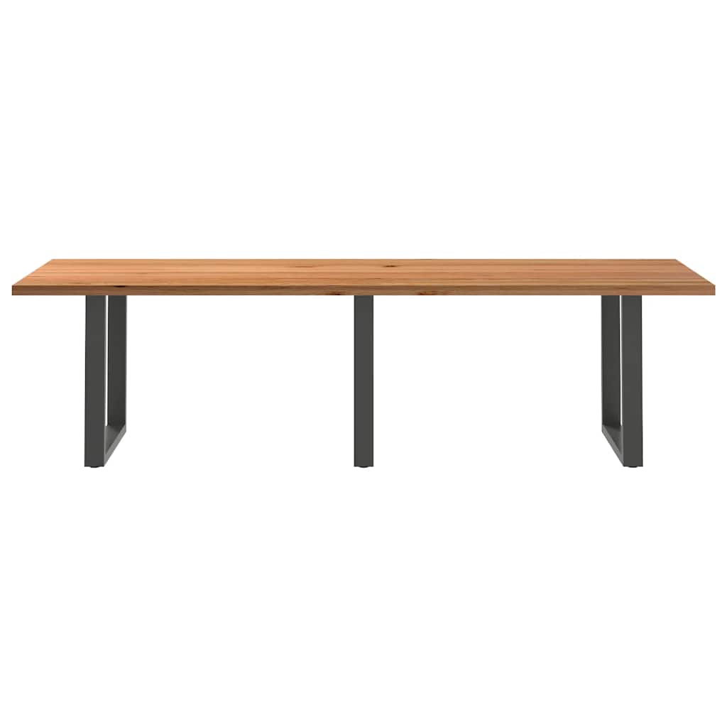 Mach jede Mahlzeit unvergesslich, indem du dich jeden Tag mit deiner Familie oder deinen Freunden um diesen Esstisch aus Holz versammelst! Robustes und langlebiges Material: Massives Eichenholz ist für seine Festigkeit, Haltbarkeit und schöne Maserung bekannt, weshalb es sich hervorragend für haltbare Möbel eignet. Durch seine natürliche Beständigkeit gegen Insektenbefall und Schimmelbildung sehen Eichenmöbel selbst nach jahrelangem Gebrauch brandneu aus.Großer Tisch: Dieser Tisch bietet mit seinen Maßen von 280 x 90 cm viel Platz zum Sitzen und ist das Herzstück deines Essbereichs.Einzigartiger Charme: Da Äste, Risse und Farbabweichungen natürliche Merkmale des Eichenholzes sind, hat jedes Stück dieses Produkts seinen ganz eigenen Charme. Auf den Bildern siehst du Beispiele für die zu erwartenden Variationen.Praktisches Design: Diese Esstischbeine sind mit verstellbaren Nivellierfüßen ausgestattet, die auch auf unebenen Böden für Stabilität sorgen und Bodenkratzer minimieren. Außerdem verfügt die Halterung über vorgebohrte Löcher und mitgelieferte Schrauben, mit denen das Bein an der Tischplatte befestigt werden kann, was die Montage erleichtert.Robustes und stabiles Gestell: Dieser Esszimmertisch hat U-förmige Beine aus pulverbeschichtetem Stahl, die für außergewöhnliche Stabilität und Sicherheit sorgen. Gut zu wissen:Jedes Stück ist ein Unikat, das in Farbe und Maserung variiert. Die Lieferung erfolgt in zufälliger Reihenfolge, wodurch die Exklusivität und Individualität deines Produkts gewährleistet wird.Äste und kleinere Fehler werden mit schwarzem Füllmaterial aufgefüllt, um eine schöne und glatte Tischoberfläche zu erhalten. Beispiele findest du in den Abbildungen.Die Tischplatte ist an den Rändern 4 cm dick, um ein robustes Aussehen zu gewährleisten, und in der Mitte 2 cm dick, um den Holzverbrauch und das Gesamtgewicht zu reduzieren.Bitte bohre die Löcher in der Mitte, nicht an den Rändern der Platte.Bitte achte darauf, die maximale Bohrtiefe von 15 mm nicht zu überschreiten, um die Tischplatte nicht zu beschädigen, da die Plattenstärke 20 mm beträgt.Wir empfehlen, einen Schraubendreher anstelle einer elektrischen Bohrmaschine zu verwenden, um Holzrisse beim Anbringen der Beine zu vermeiden.