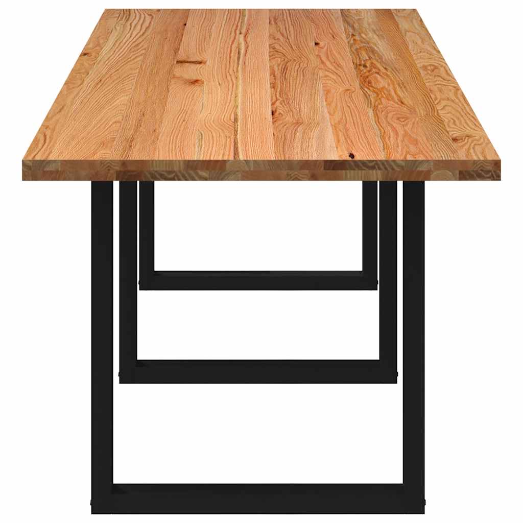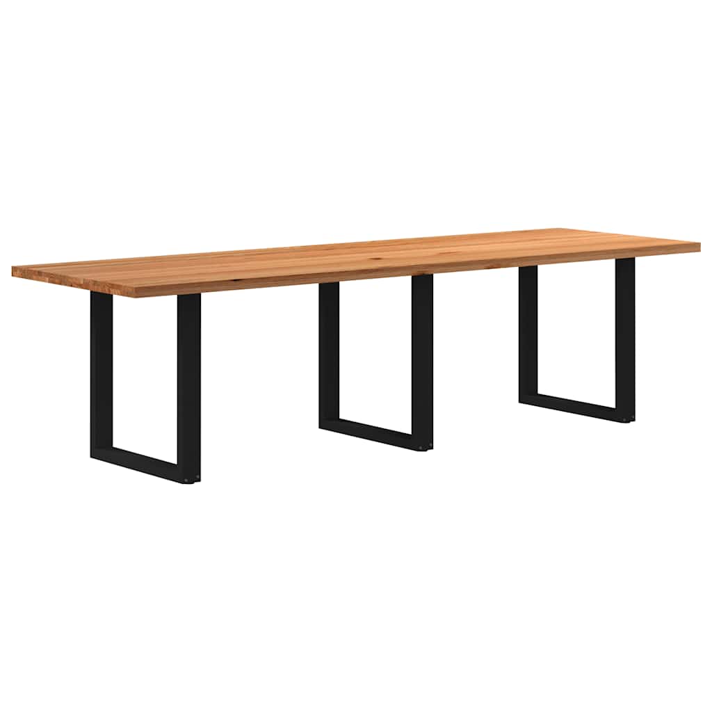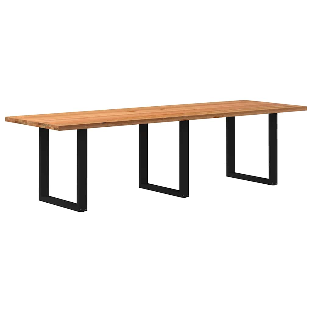 Mach jede Mahlzeit unvergesslich, indem du dich jeden Tag mit deiner Familie oder deinen Freunden um diesen Esstisch aus Holz versammelst! Robustes und langlebiges Material: Massives Eichenholz ist für seine Festigkeit, Haltbarkeit und schöne Maserung bekannt, weshalb es sich hervorragend für haltbare Möbel eignet. Durch seine natürliche Beständigkeit gegen Insektenbefall und Schimmelbildung sehen Eichenmöbel selbst nach jahrelangem Gebrauch brandneu aus.Großer Tisch: Dieser Tisch bietet mit seinen Maßen von 280 x 90 cm viel Platz zum Sitzen und ist das Herzstück deines Essbereichs.Einzigartiger Charme: Da Äste, Risse und Farbabweichungen natürliche Merkmale des Eichenholzes sind, hat jedes Stück dieses Produkts seinen ganz eigenen Charme. Auf den Bildern siehst du Beispiele für die zu erwartenden Variationen.Praktisches Design: Diese Esstischbeine sind mit verstellbaren Nivellierfüßen ausgestattet, die auch auf unebenen Böden für Stabilität sorgen und Bodenkratzer minimieren. Außerdem verfügt die Halterung über vorgebohrte Löcher und mitgelieferte Schrauben, mit denen das Bein an der Tischplatte befestigt werden kann, was die Montage erleichtert.Robustes und stabiles Gestell: Dieser Esszimmertisch hat U-förmige Beine aus pulverbeschichtetem Stahl, die für außergewöhnliche Stabilität und Sicherheit sorgen. Gut zu wissen:Jedes Stück ist ein Unikat, das in Farbe und Maserung variiert. Die Lieferung erfolgt in zufälliger Reihenfolge, wodurch die Exklusivität und Individualität deines Produkts gewährleistet wird.Äste und kleinere Fehler werden mit schwarzem Füllmaterial aufgefüllt, um eine schöne und glatte Tischoberfläche zu erhalten. Beispiele findest du in den Abbildungen.Die Tischplatte ist an den Rändern 4 cm dick, um ein robustes Aussehen zu gewährleisten, und in der Mitte 2 cm dick, um den Holzverbrauch und das Gesamtgewicht zu reduzieren.Bitte bohre die Löcher in der Mitte, nicht an den Rändern der Platte.Bitte achte darauf, die maximale Bohrtiefe von 15 mm nicht zu überschreiten, um die Tischplatte nicht zu beschädigen, da die Plattenstärke 20 mm beträgt.Wir empfehlen, einen Schraubendreher anstelle einer elektrischen Bohrmaschine zu verwenden, um Holzrisse beim Anbringen der Beine zu vermeiden.
