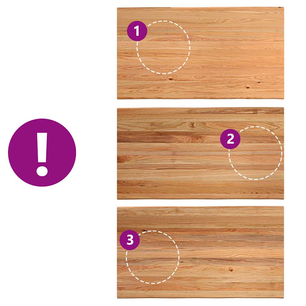 Mach jede Mahlzeit unvergesslich, indem du dich jeden Tag mit deiner Familie oder deinen Freunden um diesen Esstisch aus Holz versammelst! Robustes und langlebiges Material: Massives Eichenholz ist für seine Festigkeit, Haltbarkeit und schöne Maserung bekannt, weshalb es sich hervorragend für haltbare Möbel eignet. Durch seine natürliche Beständigkeit gegen Insektenbefall und Schimmelbildung sehen Eichenmöbel selbst nach jahrelangem Gebrauch brandneu aus.Großer Tisch: Dieser Tisch bietet mit seinen Maßen von 180 x 100 cm viel Platz zum Sitzen und ist das Herzstück deines Essbereichs.Naturkanten: Diese Tischplatte hat geschwungene Kanten, die von der natürlichen Form eines Baumes inspiriert sind und deinem Tisch eine charmante Note verleihen.Einzigartiger Charme: Da Äste, Risse und Farbabweichungen natürliche Merkmale des Eichenholzes sind, hat jedes Stück dieses Produkts seinen ganz eigenen Charme. Auf den Bildern siehst du Beispiele für die zu erwartenden Variationen.Praktisches Design: Diese Esstischbeine sind mit verstellbaren Nivellierfüßen ausgestattet, die auch auf unebenen Böden für Stabilität sorgen und Bodenkratzer minimieren. Außerdem verfügt die Halterung über vorgebohrte Löcher und mitgelieferte Schrauben, mit denen das Bein an der Tischplatte befestigt werden kann, was die Montage erleichtert. Gut zu wissen:Jedes Stück ist ein Unikat, das in Farbe und Maserung variiert. Die Lieferung erfolgt in zufälliger Reihenfolge, wodurch die Exklusivität und Individualität deines Produkts gewährleistet wird.Äste und kleinere Fehler werden mit schwarzem Füllmaterial aufgefüllt, um eine schöne und glatte Tischoberfläche zu erhalten. Beispiele findest du in den Abbildungen.Die Tischplatte ist an den Rändern 4 cm dick, um ein robustes Aussehen zu gewährleisten, und in der Mitte 2 cm dick, um den Holzverbrauch und das Gesamtgewicht zu reduzieren.Bitte bohre die Löcher in der Mitte, nicht an den Rändern der Platte.Bitte achte darauf, die maximale Bohrtiefe von 15 mm nicht zu überschreiten, um die Tischplatte nicht zu beschädigen, da die Plattenstärke 20 mm beträgt.Wir empfehlen, einen Schraubendreher anstelle einer elektrischen Bohrmaschine zu verwenden, um Holzrisse beim Anbringen der Beine zu vermeiden.