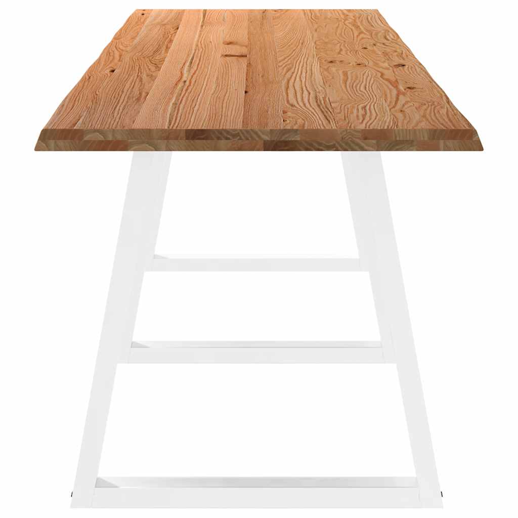 Mach jede Mahlzeit unvergesslich, indem du dich jeden Tag mit deiner Familie oder deinen Freunden um diesen Esstisch aus Holz versammelst! Robustes und langlebiges Material: Massives Eichenholz ist für seine Festigkeit, Haltbarkeit und schöne Maserung bekannt, weshalb es sich hervorragend für haltbare Möbel eignet. Durch seine natürliche Beständigkeit gegen Insektenbefall und Schimmelbildung sehen Eichenmöbel selbst nach jahrelangem Gebrauch brandneu aus.Großer Tisch: Dieser Tisch bietet mit seinen Maßen von 320 x 80 cm viel Platz zum Sitzen und ist das Herzstück deines Essbereichs.Naturkanten: Diese Tischplatte hat geschwungene Kanten, die von der natürlichen Form eines Baumes inspiriert sind und deinem Tisch eine charmante Note verleihen.Einzigartiger Charme: Da Äste, Risse und Farbabweichungen natürliche Merkmale des Eichenholzes sind, hat jedes Stück dieses Produkts seinen ganz eigenen Charme. Auf den Bildern siehst du Beispiele für die zu erwartenden Variationen.Praktisches Design: Diese Esstischbeine sind mit verstellbaren Nivellierfüßen ausgestattet, die auch auf unebenen Böden für Stabilität sorgen und Bodenkratzer minimieren. Außerdem verfügt die Halterung über vorgebohrte Löcher und mitgelieferte Schrauben, mit denen das Bein an der Tischplatte befestigt werden kann, was die Montage erleichtert. Gut zu wissen:Jedes Stück ist ein Unikat, das in Farbe und Maserung variiert. Die Lieferung erfolgt in zufälliger Reihenfolge, wodurch die Exklusivität und Individualität deines Produkts gewährleistet wird.Äste und kleinere Fehler werden mit schwarzem Füllmaterial aufgefüllt, um eine schöne und glatte Tischoberfläche zu erhalten. Beispiele findest du in den Abbildungen.Die Tischplatte ist an den Rändern 4 cm dick, um ein robustes Aussehen zu gewährleisten, und in der Mitte 2 cm dick, um den Holzverbrauch und das Gesamtgewicht zu reduzieren.Bitte bohre die Löcher in der Mitte, nicht an den Rändern der Platte.Bitte achte darauf, die maximale Bohrtiefe von 15 mm nicht zu überschreiten, um die Tischplatte nicht zu beschädigen, da die Plattenstärke 20 mm beträgt.Wir empfehlen, einen Schraubendreher anstelle einer elektrischen Bohrmaschine zu verwenden, um Holzrisse beim Anbringen der Beine zu vermeiden.