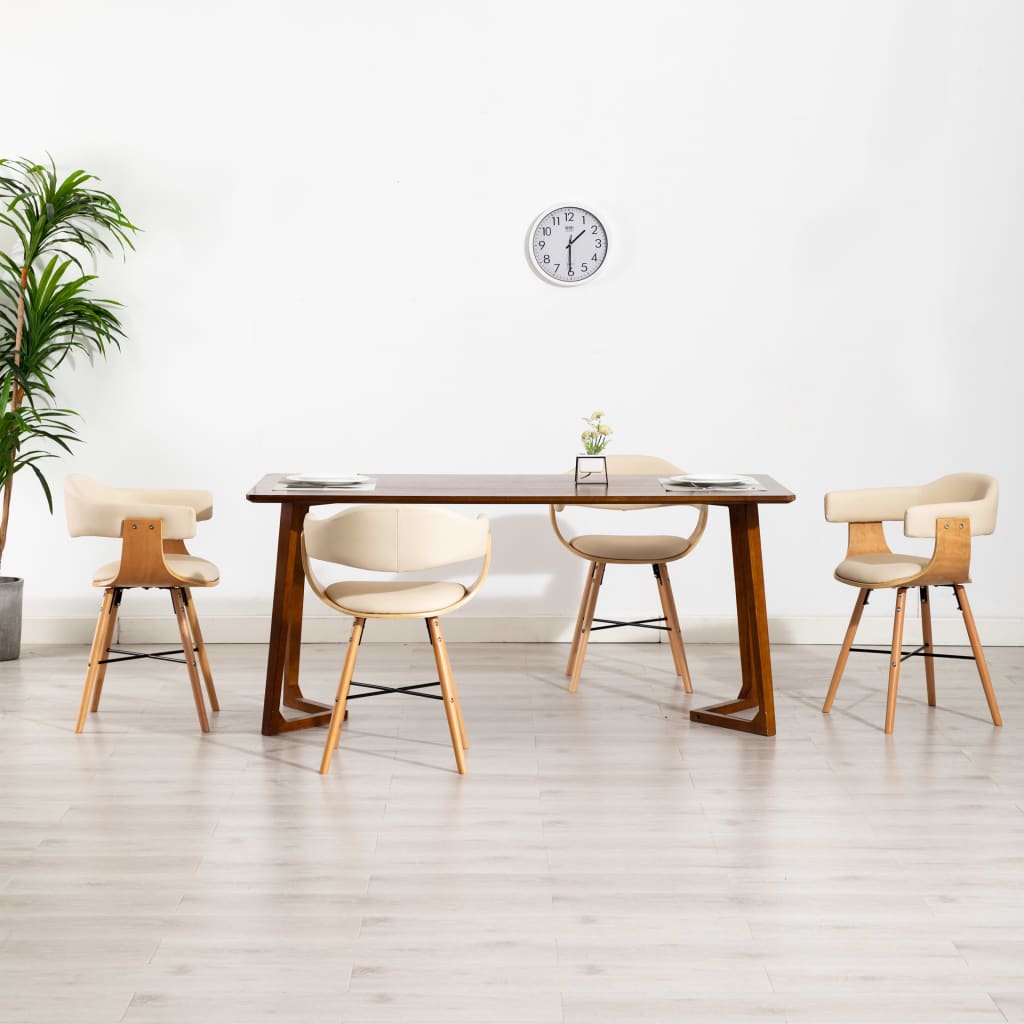 Verleihen Sie Ihrer Inneneinrichtung sofort eine beeindruckende, moderne Note mit diesen eleganten Esszimmerstühlen! Dieses Set besteht aus 4 Esszimmerstühlen mit Armlehnen, die mit luxuriösem, hochwertigem Kunstleder bezogen sind. Sie sind ästhetisch und ergonomisch gestaltet, um eine dekorative und zugleich komfortable Ergänzung zu Ihrem Esszimmer darzustellen. Dank der dick gepolsterten Sitzfläche und Rückenlehne bieten diese Küchenstühle höchsten Sitzkomfort. Das starke Bugholzgestell macht die Sessel robust und langlebig und verleiht ihnen ein stilvolles Aussehen. Darüber hinaus sind die Esszimmerstühle einfach zu montieren. Die Lieferung umfasst 4 Esszimmerstühle.