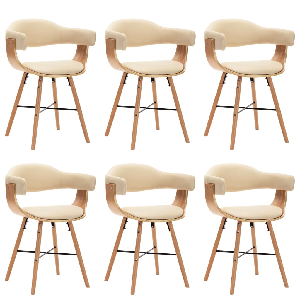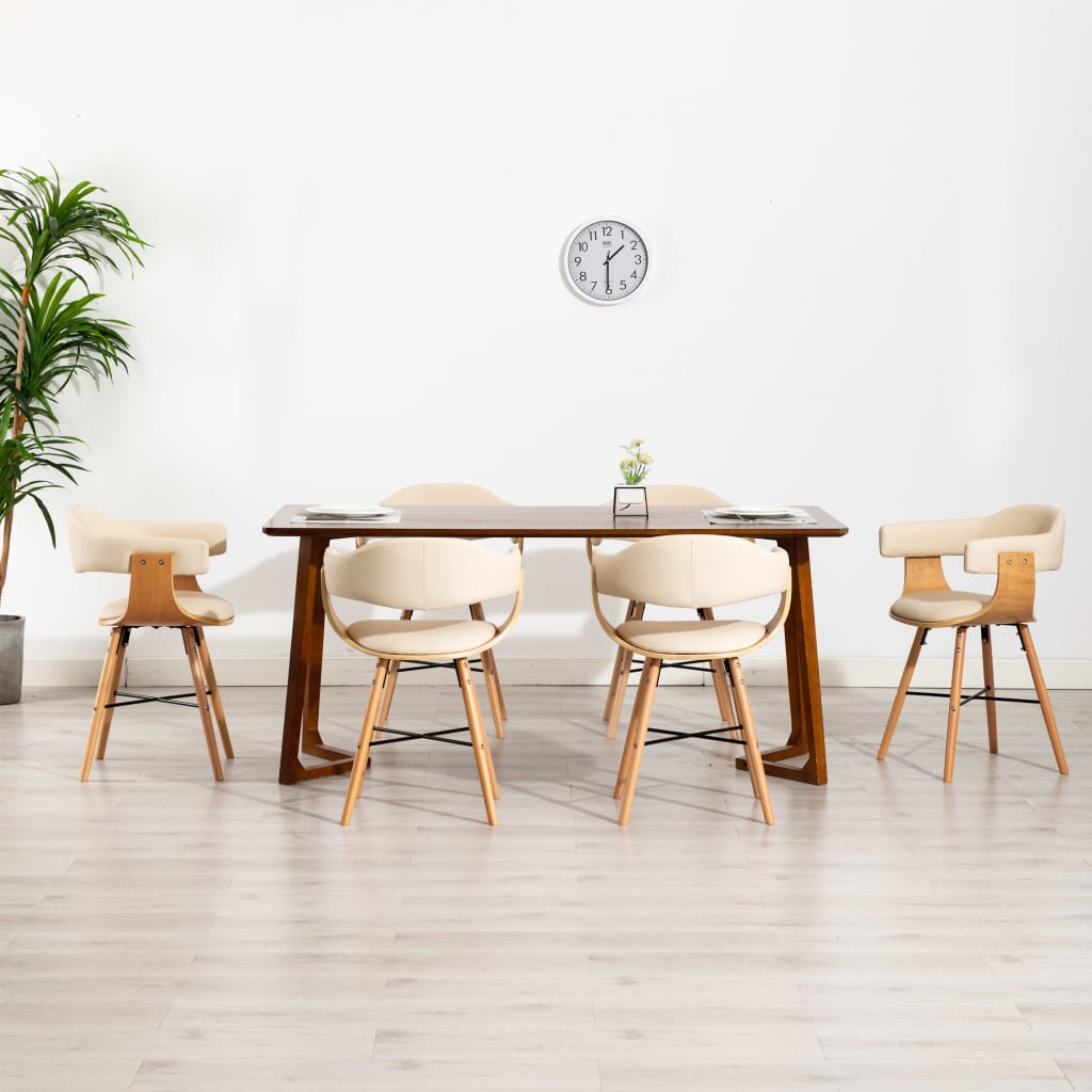 Verleihen Sie Ihrer Inneneinrichtung sofort eine beeindruckende, moderne Note mit diesen eleganten Esszimmerstühlen! Dieses Set besteht aus 6 Esszimmerstühlen mit Armlehnen, die mit luxuriösem, hochwertigem Kunstleder bezogen sind. Sie sind ästhetisch und ergonomisch gestaltet, um eine dekorative und zugleich komfortable Ergänzung zu Ihrem Esszimmer darzustellen. Dank der dick gepolsterten Sitzfläche und Rückenlehne bieten diese Küchenstühle höchsten Sitzkomfort. Das starke Bugholzgestell macht die Sessel robust und langlebig und verleiht ihnen ein stilvolles Aussehen. Darüber hinaus sind die Esszimmerstühle einfach zu montieren. Die Lieferung beinhaltet 6 Esszimmerstühle.