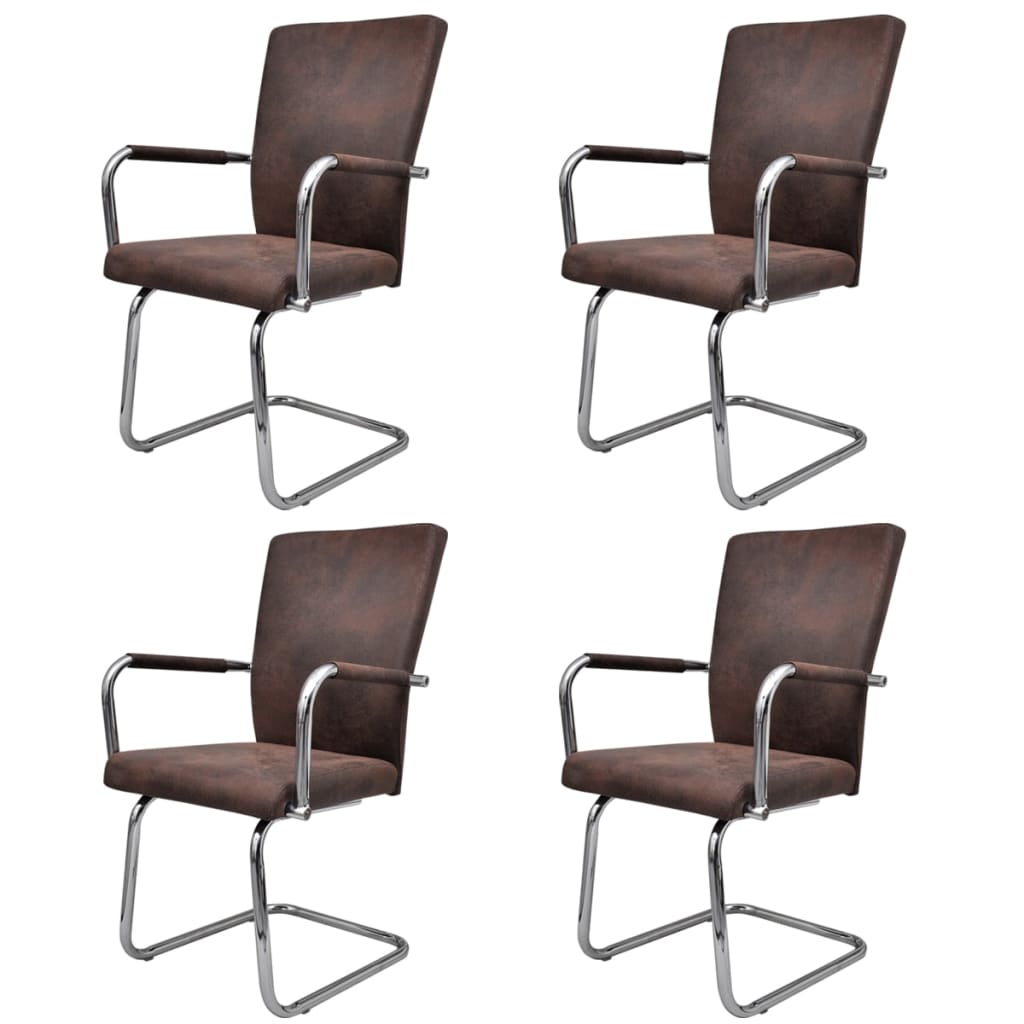 Dieses Set aus 4 hochwertigen Freischwinger ist ästhetisch und ergonomisch gestaltet, um überall eine auffällige Aussage zu treffen. Der bequeme Esszimmerstuhl weist eine hochwertige und robuste Konstruktion auf. Die Stuhlbeine sind aus stabilem Eisen hergestellt und können einfach gereinigt werden. Die dick gepolsterten Sitzfläche und Rückenlehne werden Ihnen optimalen Sitzkomfort bieten. Die langlebige, robuste Konstruktion des Stuhles sorgt für eine lange Lebensdauer. Lieferung enthält 4 braune Esszimmerstühle.