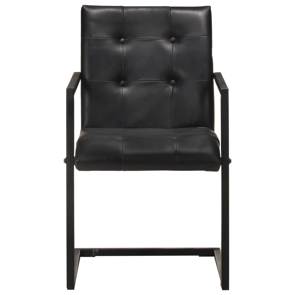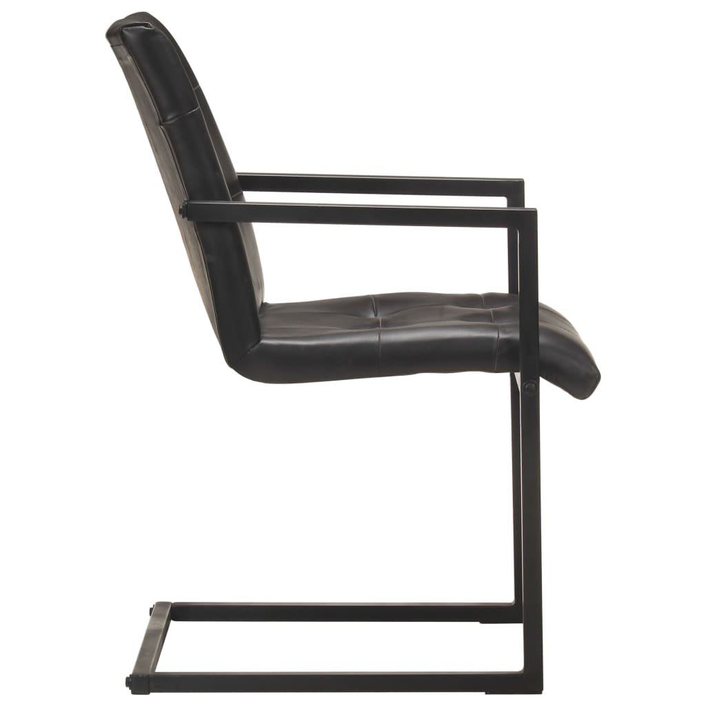 Mit ihrem Retro-Design passen diese Freischwinger perfekt zu jeder Küche bzw. jedem Esszimmer. Dank der dick gepolsterten Sitzfläche und Rückenlehne sind diese Stühle aus Echtleder äußerst bequem und leicht zu reinigen. Der stabile Stahlrahmen mit Pulverbeschichtung sorgt für Robustheit und Langlebigkeit.