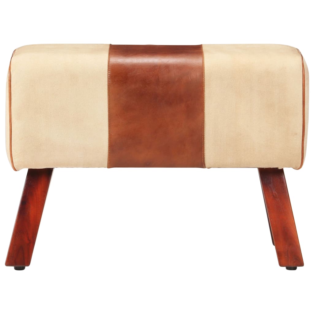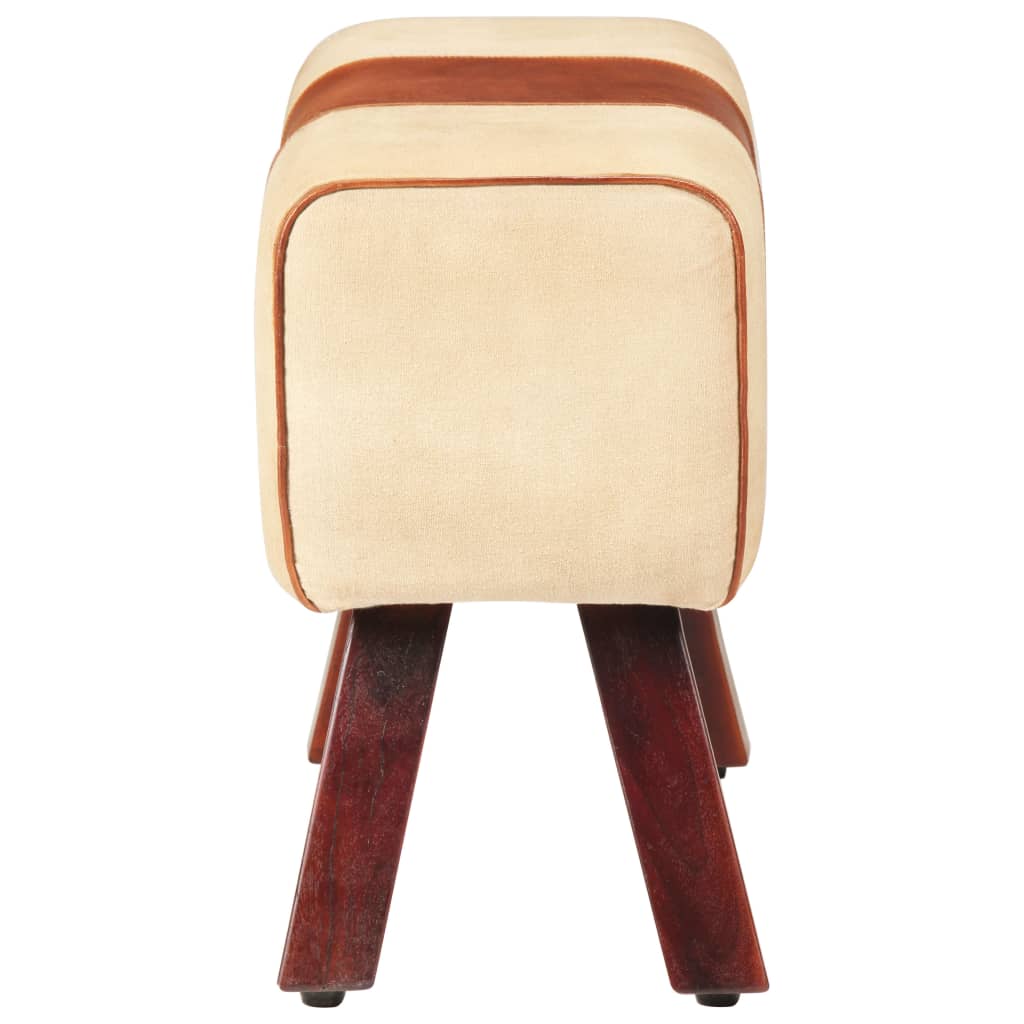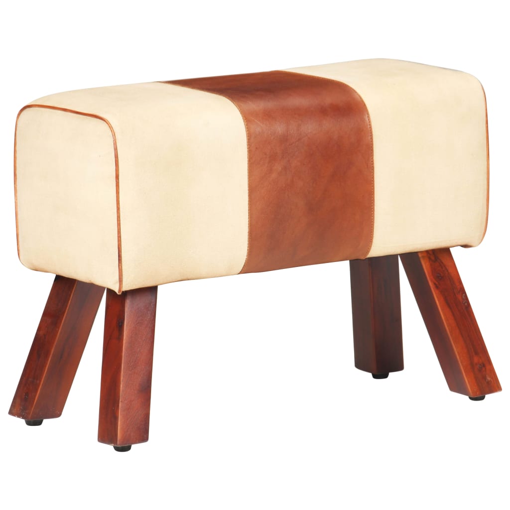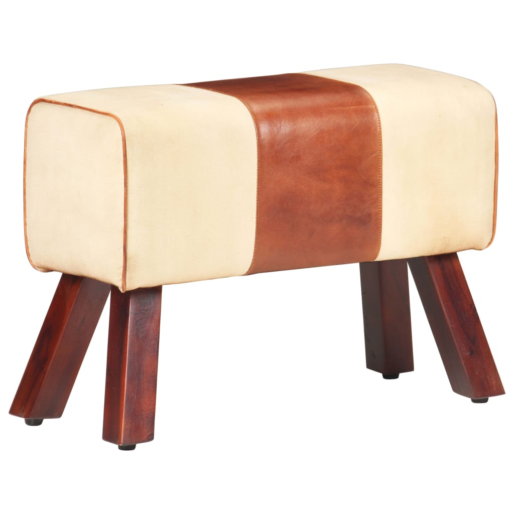 Schaffe eine Vintage-Atmosphäre in deinem Wohnraum mit dieser Bock-Sitzbank aus Echtleder. Diese Bank ist mit strapazierfähigem Echtleder und Canvas bezogen und bietet ein hervorragendes Sitzgefühl. Die Sitzbank im Turnbock-Design ist mit Beinen aus massivem Mangoholz versehen, die für Stabilität und Robustheit sorgen. Zudem bietet die dicke Polsterung zusätzlichen Komfort.