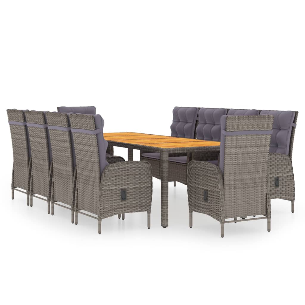 Genießen Sie eine angenehme Mahlzeit oder Ihren Nachmittagstee in Ihrem Außenbereich an dieser Garten-Essgruppe! Mit ihrem eleganten Design wird sie ein echter Hingucker in Ihrem Garten oder auf Ihrer Terrasse sein! Hochwertiges Material: Die robusten Stahlrahmen sind mit wetterfestem, handgeflochtenem PE-Rattan umwickelt. Diese Outdoor-Essgruppe ist daher rost- und schimmelbeständig und bietet jahrelange Entspannung.Robuste und stabile Struktur: Die Stahlrahmen sorgen für Robustheit und Stabilität.Bequeme Stühle: Mit seiner geschwungenen Rückenlehne und Armlehnen weist der Gartensessel eine ergonomische Form auf und bietet höchsten Komfort. Die mitgelieferten Kissen sorgen für zusätzlichen Halt und der Bezug mit Reißverschluss lässt sich zum einfachen Waschen abnehmen.Liegefunktion: Der Gartenstuhl hat eine verstellbare Rückenlehne und Fußstütze, die du je nach Belieben einstellen kannst. Hinweis:Um die Lebensdauer deiner Gartenmöbel zu verlängern, empfehlen wir dir, sie mit einer wasserdichten Hülle zu schützen.