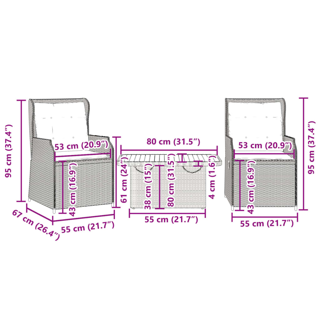 3-tlg. Garten-Lounge-Set mit Kissen Beige Poly Rattan