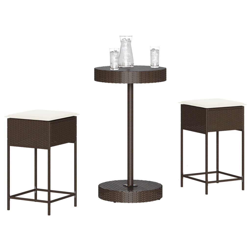 Dieses trendige Gartenbar-Set vereint Stil und Funktionalität und wird ein echter Hingucker in deinem Garten, auf deiner Terrasse oder in jedem anderen Außenbereich sein. Langlebiges Material: PE-Rattan, auch als Poly Rattan bekannt, ist ein robustes, pflegeleichtes synthetisches Material, das die Optik von natürlichem Rattan aufweist. Es kennzeichnet sich durch ein geringes Eigengewicht und lässt sich einfach reinigen. Aufgrund seiner Haltbarkeit und Witterungsbeständigkeit wird es häufig bei der Herstellung von Gartenmöbeln verwendet.Bequemes Sitzerlebnis: Dieser Gartensessel mit dick gepolsterten Kissen bietet ein angenehmes Sitzgefühl.Abnehmbarer und waschbarer Bezug: Diese Sitzkissen verfügen über abnehmbare Bezüge für einfaches Waschen und Pflegen.Robuster und stabiler Rahmen: Dank des pulverbeschichteten Stahlrahmens ist das Möbelstück robust, stabil und für den täglichen Einsatz im Außenbereich geeignet. Gut zu wissen:Wir empfehlen dir, deine Gartenmöbel mit einer wasserdichten Hülle zu schützen, um lange Zeit eine ansprechende Optik aufzuweisen.