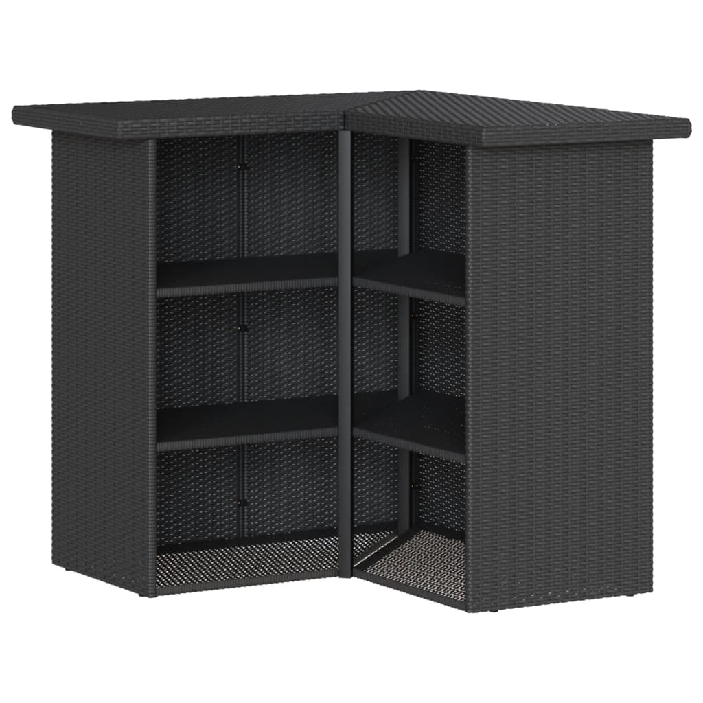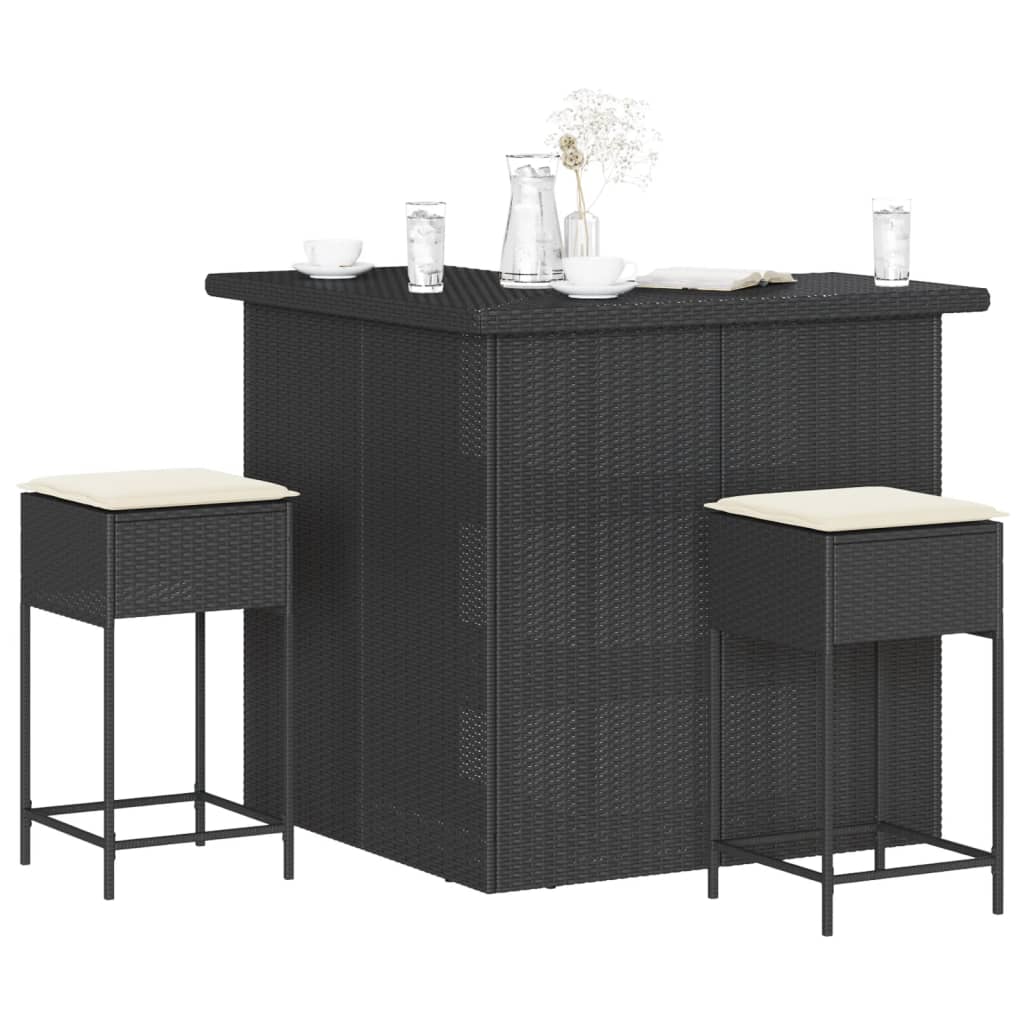 3-tlg. Gartenbar-Set mit Kissen Schwarz Poly Rattan