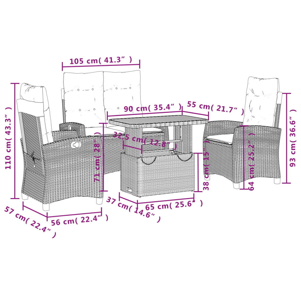 4-tlg. Garten-Essgruppe mit Kissen Beige Poly Rattan