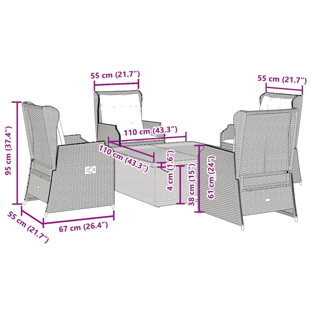 5-tlg. Garten-Lounge-Set mit Kissen Beige Poly Rattan