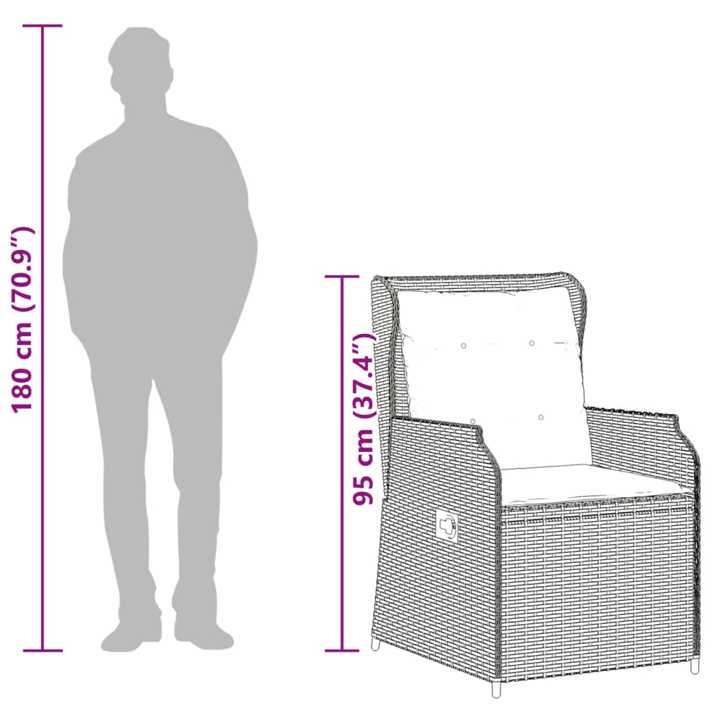 Dieses Garten-Lounge-Set ist die perfekte Ergänzung zu deinem Garten, deiner Terrasse oder deinem Innenhof. Es bietet einen bequemen und einladenden Platz, um mit Familie und Freunden zu plaudern oder dich einfach nur zu entspannen und das Leben im Freien zu genießen. Langlebiges Material: PE-Rattan, auch als Poly Rattan bekannt, ist ein robustes, pflegeleichtes synthetisches Material, das die Optik von natürlichem Rattan aufweist. Es kennzeichnet sich durch ein geringes Eigengewicht und lässt sich einfach reinigen. Aufgrund seiner Haltbarkeit und Witterungsbeständigkeit wird es häufig bei der Herstellung von Gartenmöbeln verwendet.Verstellbare Rückenlehne: Du kannst die Rückenlehne durch Betätigung des Griffes verstellen und sie danach schnell wieder in ihre ursprüngliche Position bringen.Abnehmbarer und waschbarer Bezug: Diese Sitzkissen verfügen über abnehmbare Bezüge für einfaches Waschen und Pflegen.Bequemes Sitzerlebnis: Dieser Gartensessel mit dick gepolsterten Kissen bietet ein angenehmes Sitzgefühl.Stabile und pflegeleichte Tischplatte: Dieser Gartentisch besitzt eine Tischplatte aus Akazienholz, die robust und langlebig ist und sich leicht mit einem feuchten Tuch reinigen lässt.Robustes und stabiles Gestell: Der pulverbeschichtete Stahlgestell ist stark, stabil, langlebig sowie korrosions- und wetterbeständig, um eine lang anhaltende Leistung zu gewährleisten. Gut zu wissen:Wir empfehlen dir, deine Gartenmöbel mit einer wasserdichten Hülle zu schützen, um lange Zeit eine ansprechende Optik aufzuweisen.