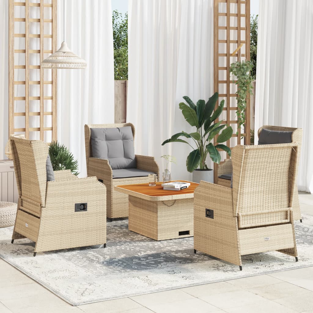 5-tlg. Garten-Lounge-Set mit Kissen Beige Poly Rattan
