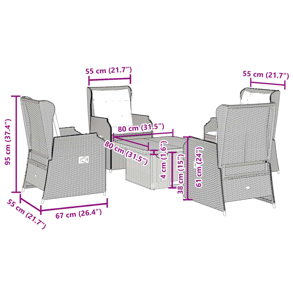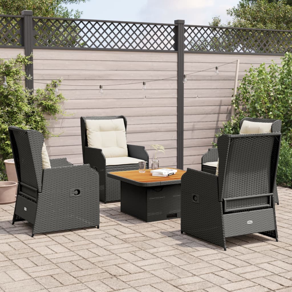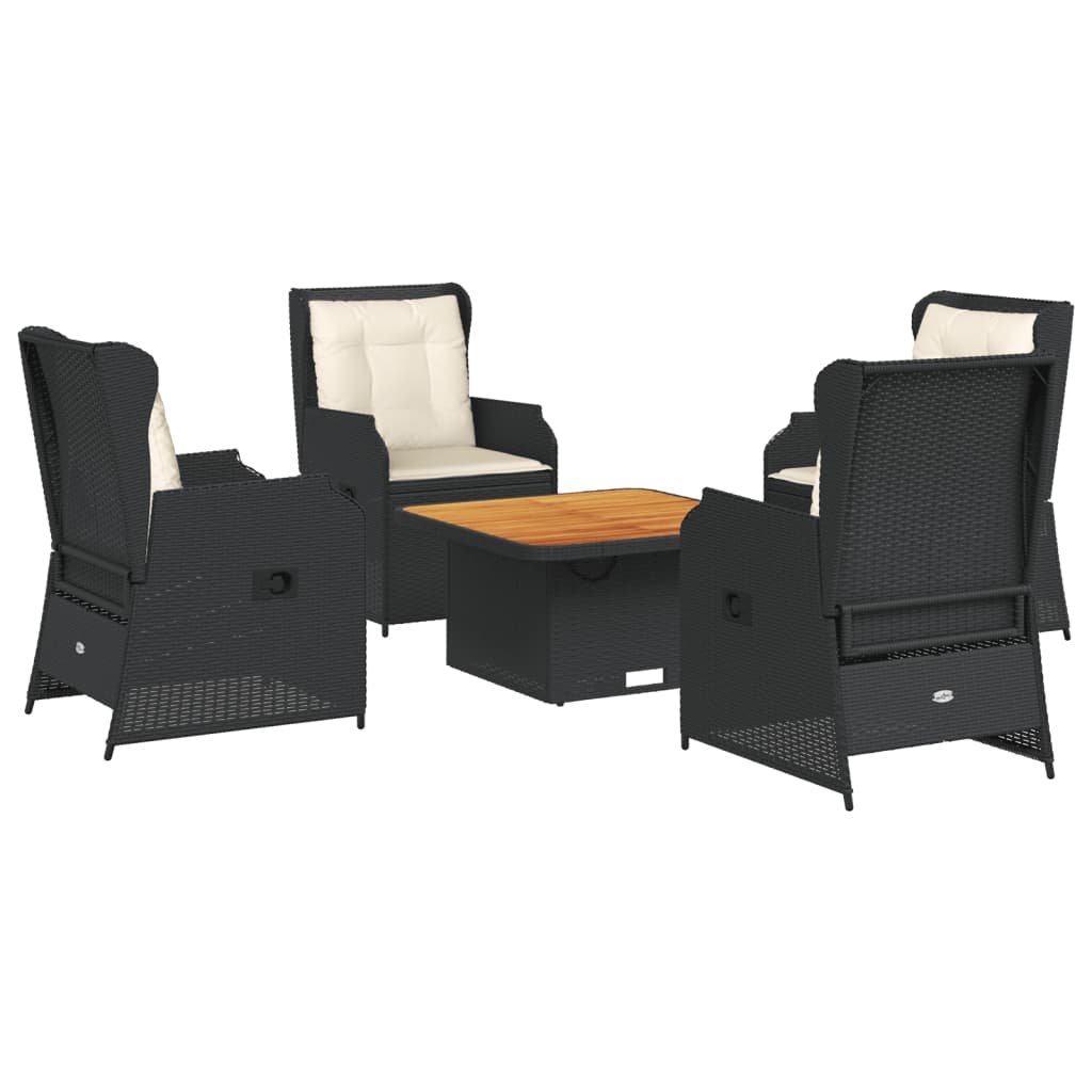5-tlg. Garten-Lounge-Set mit Kissen Schwarz Poly Rattan