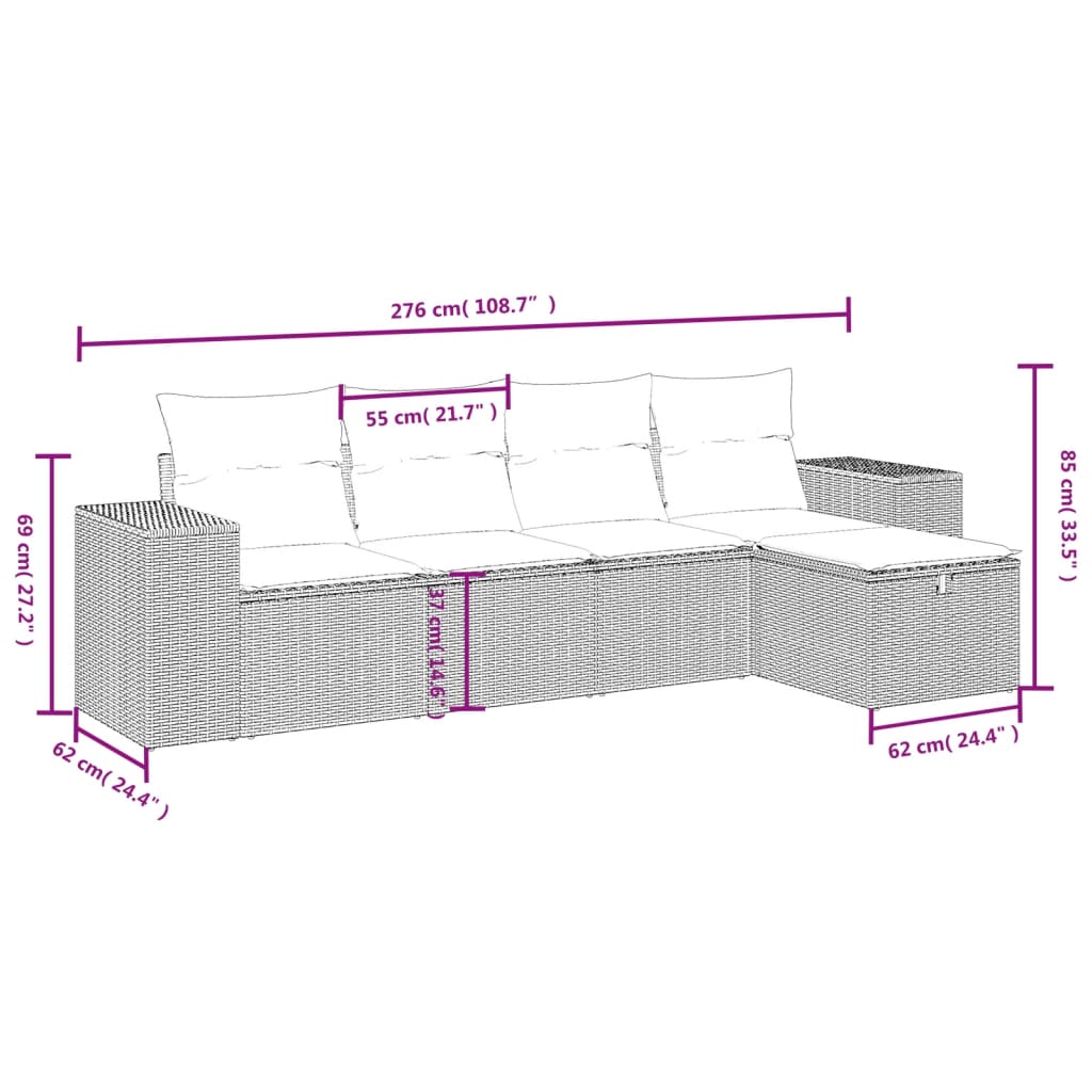 5-tlg. Garten-Sofagarnitur mit Kissen Hellgrau Poly Rattan