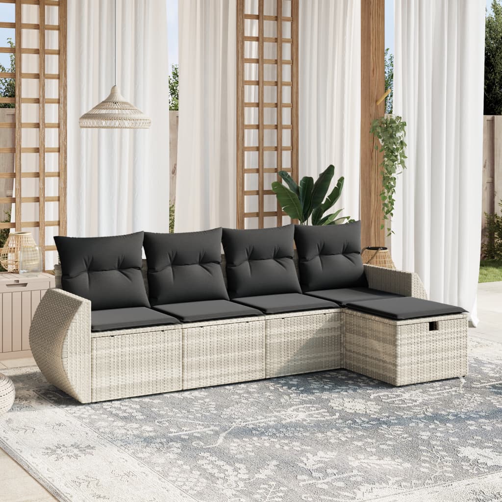 5-tlg. Garten-Sofagarnitur mit Kissen Hellgrau Poly Rattan