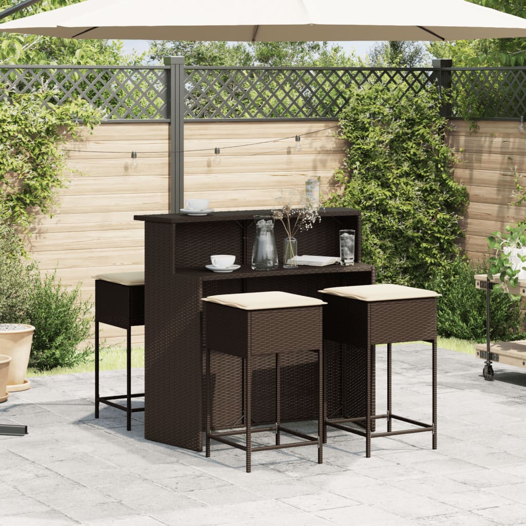 5-tlg. Gartenbar-Set mit Kissen Braun Poly Rattan