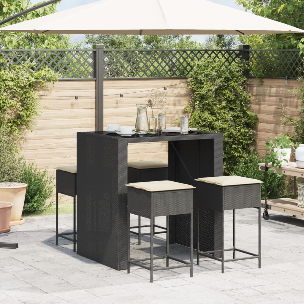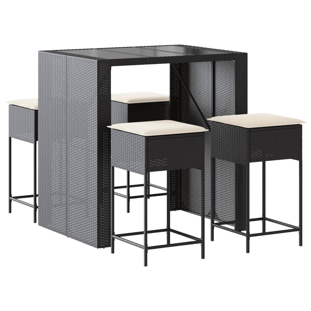 5-tlg. Gartenbar-Set mit Kissen Schwarz Poly Rattan