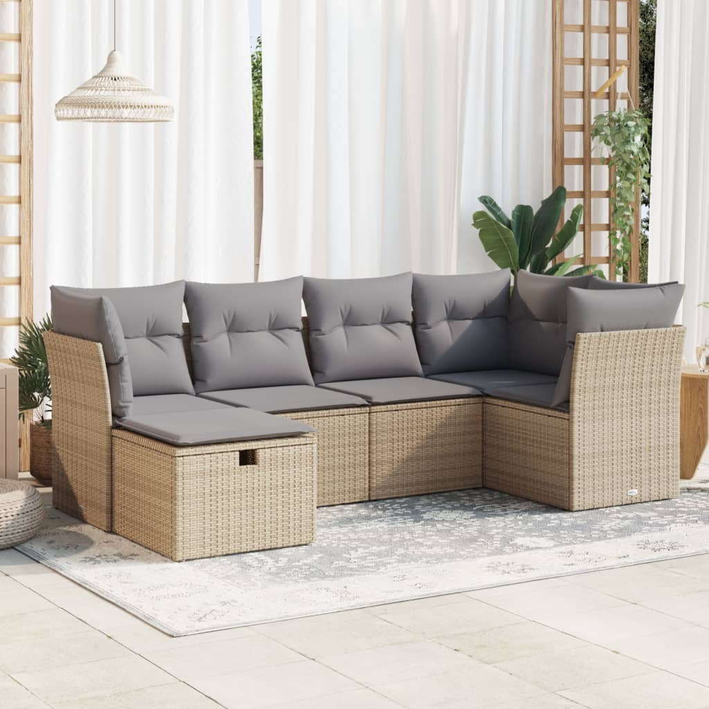 6-tlg. Garten-Sofagarnitur mit Kissen Beige Poly Rattan