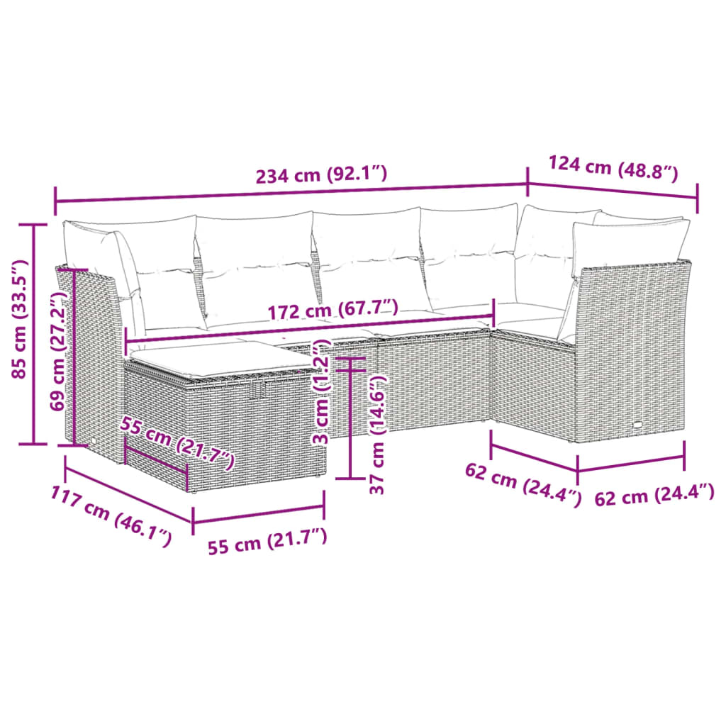 6-tlg. Garten-Sofagarnitur mit Kissen Beige Poly Rattan