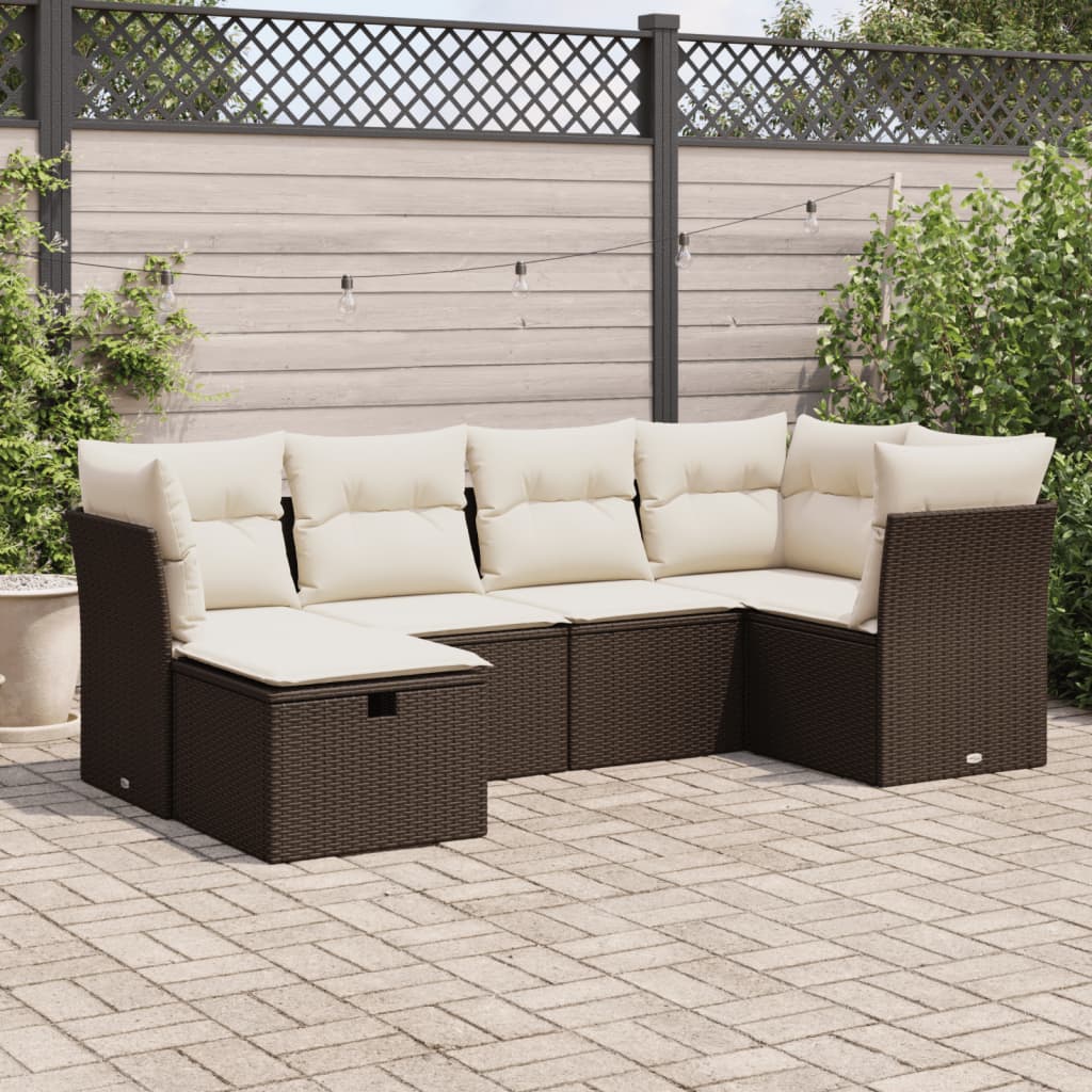 6-tlg. Garten-Sofagarnitur mit Kissen Braun Poly Rattan