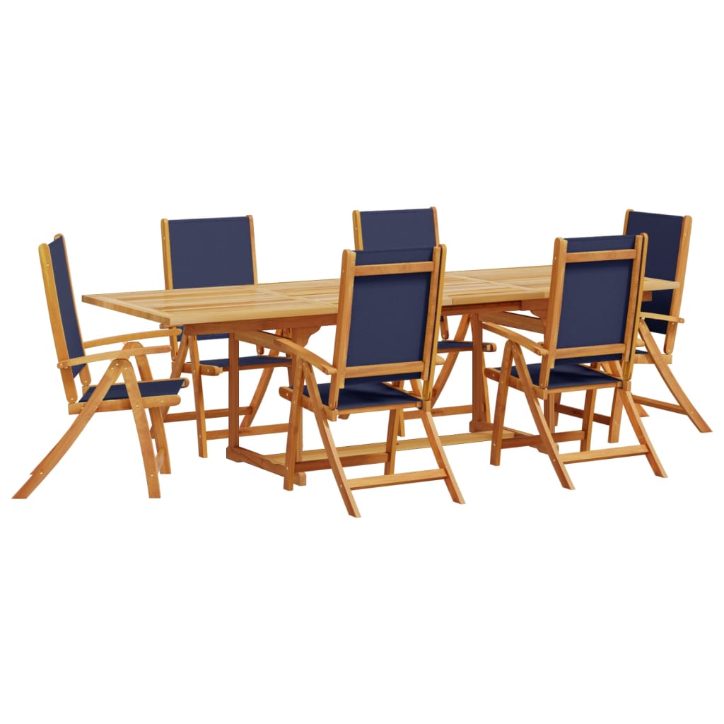 Genieße unvergessliche Mahlzeiten im Freien mit Familie und Freunden an dieser Essgruppe aus Holz! Massives Akazienholz: Die Outdoor-Essgruppe ist aus massivem Akazienholz gefertigt. Akazienholz ist ein wunderschönes Naturmaterial. Akazienholz ist ein tropisches Hartholz, das dicht, robust und langlebig ist. Verstellbar und klappbar: Der Gartenstuhl lässt sich in 5 Positionen verstellen, um stets die bequemste Sitzposition zu finden. Er lässt sich auch einfach zusammenklappen, um bei Nichtgebrauch Platz zu sparen. Praktisches Design: Dank seines speziellen Designs ist dieser Gartentisch ausziehbar – perfekt wenn zusätzlicher Platz benötigt wird. In der Tischplatte befindet sich ein Loch, sodass du leicht einen Sonnenschirm anbringen kannst, um einen schattigen Platz zu schaffen. Robuste Tischplatte: Dieser Garten-Esstisch verfügt über eine robuste Tischplatte. Darauf finden Snacks, Getränke und Lieblingsdekorationen Platz. Einfache Reinigung: Dank der Ölbeschichtung lassen sich der Gartentisch und die Stühle einfach mit einem feuchten Tuch reinigen. Gut zu wissen:Wir empfehlen dir, deine Gartenmöbel mit einer wasserdichten Hülle zu schützen, um lange Zeit eine ansprechende Optik aufzuweisen.