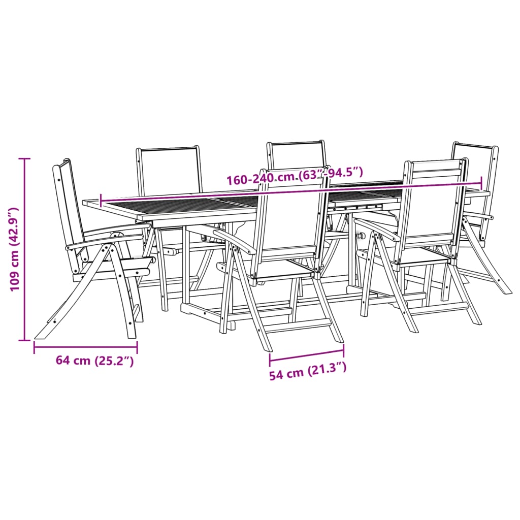 7-tlg. Garten-Essgruppe Massivholz Akazie und Textilene