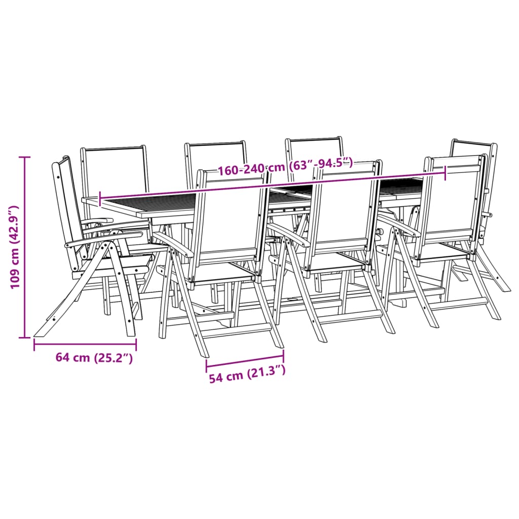 9-tlg. Garten-Essgruppe Massivholz Akazie und Textilene