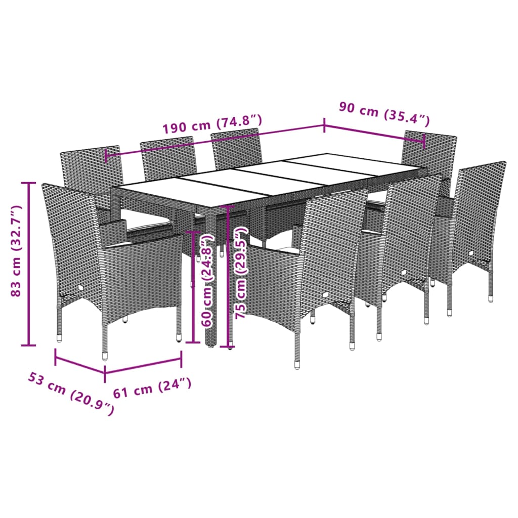 9-tlg. Garten-Essgruppe mit Kissen Beige Poly Rattan Glas