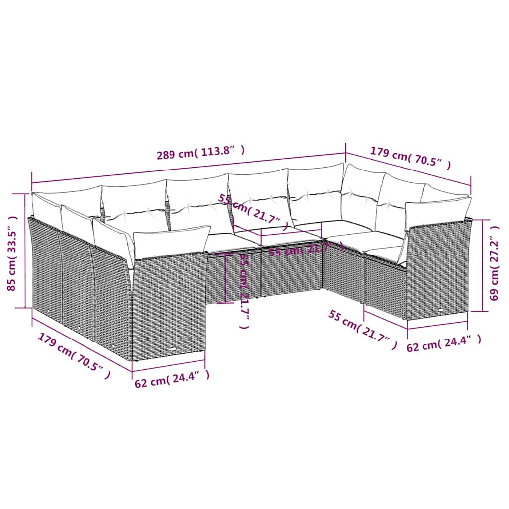 9-tlg. Garten-Sofagarnitur mit Kissen Hellgrau Poly Rattan
