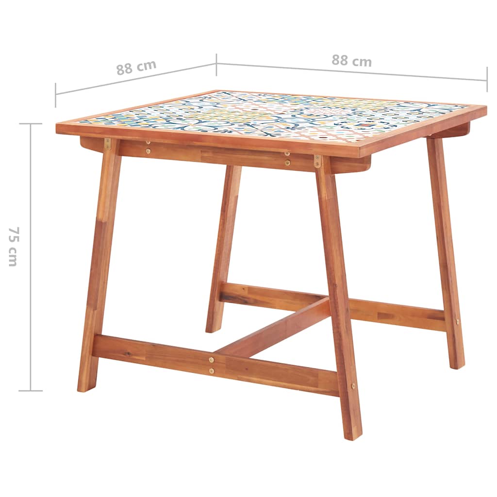 Unser klassisch schicker Esstisch aus Holz wird nie aus der Mode kommen. Er wird sicherlich der Mittelpunkt deines Gartens, deiner Terrasse, deines Balkons oder eines anderen Außen- oder Innenbereichs sein. Der Tisch besteht aus massivem Akazienholz, einem tropischen Hartholz, das witterungsbeständig und langlebig ist und den Tisch für die Verwendung im Freien geeignet macht. Die Mosaikfliesenplatte verleiht deinen Räumen Interesse und Charme. Außerdem lässt sie sich leicht mit einem feuchten Tuch abwischen. Der Esstisch lässt sich einfach zusammenbauen.