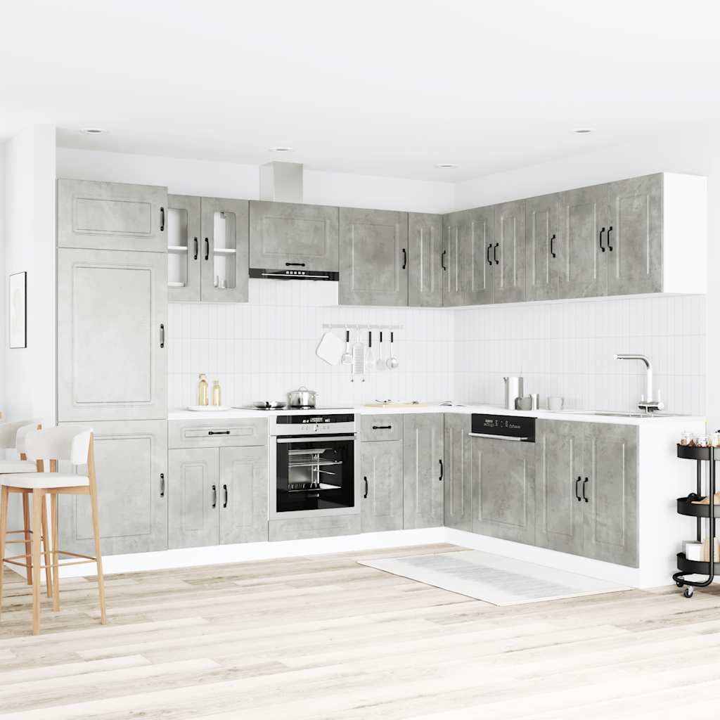 14-tlg. Küchenschrank-Set Kalmar Betongrau Holzwerkstoff