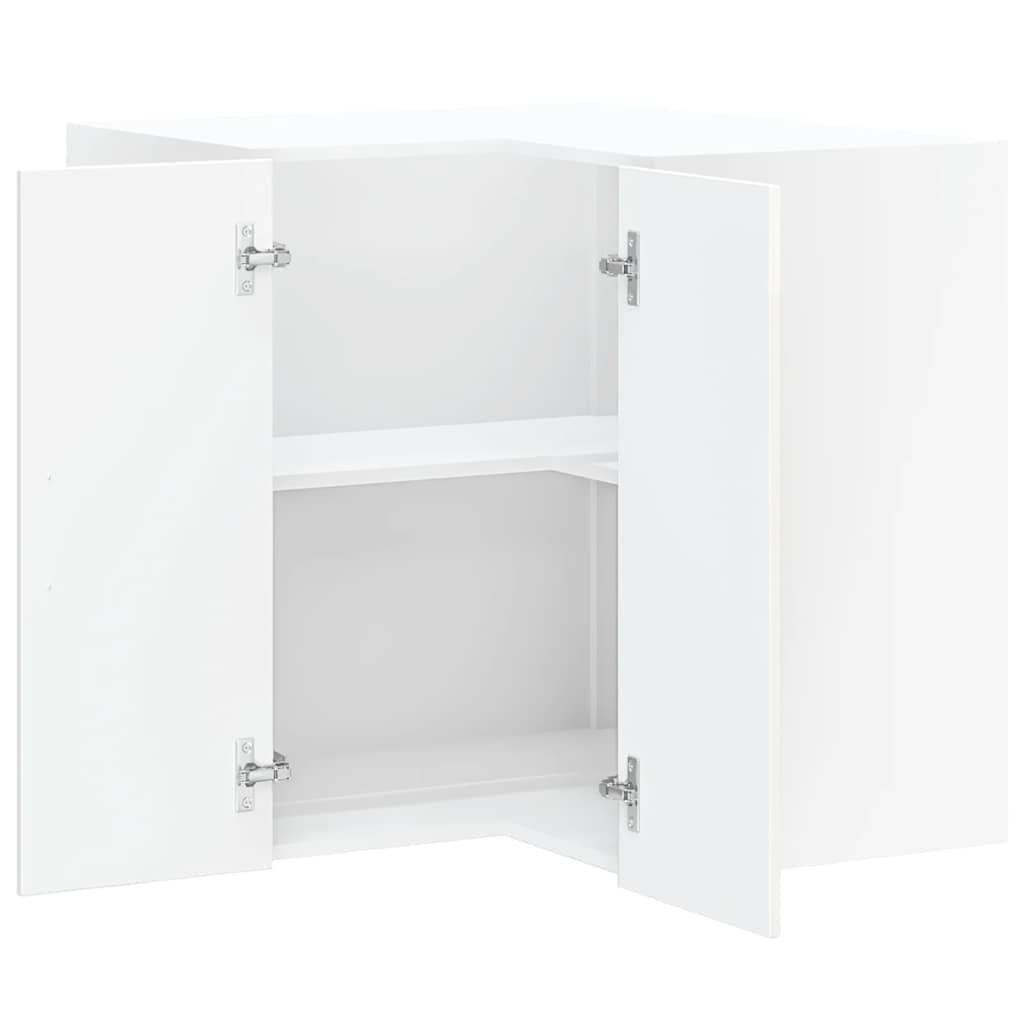Dieser Eckhängeschrank optimiert den verfügbaren Platz in deiner Küche und stellt ein auffälliges Deko-Element in deinem Zuhause dar! Starkes und langlebiges Material: Holzwerkstoff ist ein langlebiges und robustes Material mit einer glatten Oberfläche, das gegen Feuchtigkeit, Verformung und Rissbildung beständig ist, wodurch es eine zuverlässigen Wahl für die Herstellung von Möbeln ist.Viel Stauraum: Der Eckhängeschrank bietet reichlich Stauraum für Schüssel, Teller, Töpfe und andere Küchengeräte.Wandmontage: Der Küchenschrank lässt sich an der Wand befestigen, um zusätzlichen Stauraum zu schaffen. Auf diese Weise kannst du deine Bodenfläche maximieren und für mehr Ordnung im Raum sorgen.Praktische Türen: Hinter den Türen kannst du Küchengeräte verstauen, und so einen sauberen und aufgeräumten Raum genießen.Pflegeleicht: Dank seiner glatten Oberfläche lässt sich dieser Schrank mit einem feuchten Tuch leicht reinigen und erfordert wenig Pflege. Gut zu wissen:Schrauben und Dübel für die Wandbefestigung sind nicht enthalten. Suchen und verwenden Sie die für Ihre Wände geeigneten Schrauben und Dübel. Wenn Sie unsicher sind, suchen Sie professionelle Hilfe. Lesen und befolgen Sie jeden Schritt der Anleitung sorgfältig.